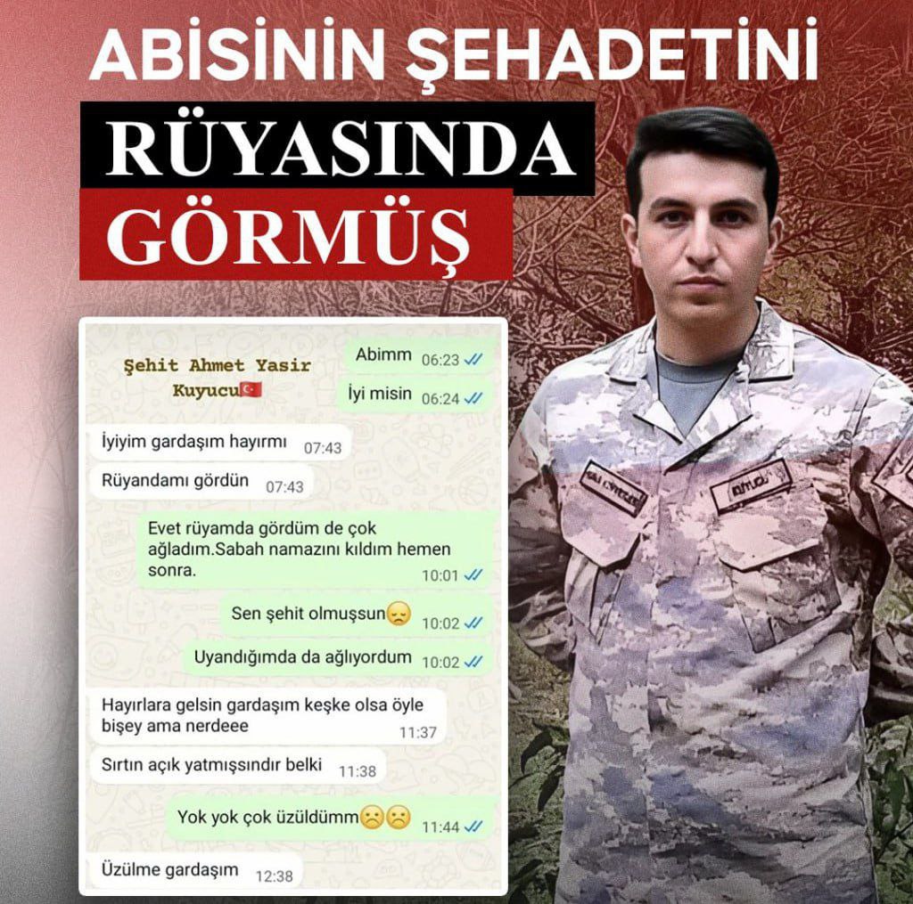 Сестра написала ему: «Мне приснилось, что ты стал шехидом». На это шехид Коюджу ответил: «Очень бы хотел… но вряд ли это случится…».