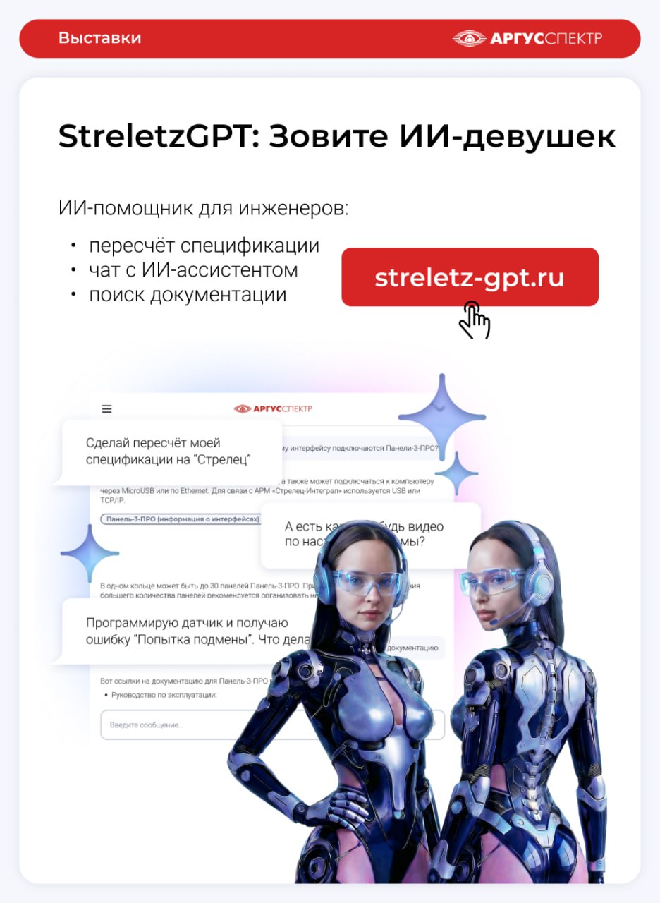 К Securika Moscow 2026 «АРГУС-СПЕКТР» запускает онлайн-помощника для специалистов StreletzGPT – это ИИ-ассистент технической поддержки, который помогает проектировать и настраивать ИСБ «Стрелец-Интеграл», предоставляя 3 ключевых функции: