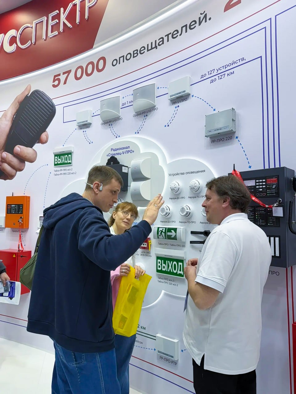 Второй день выставки подходит к концу. Главная новинка — беспроводная система оповещения о пожаре и теракте «Стрелец-V-ПРО» — прошла самое душевное испытание. Наш аварийный микрофон идеально передает драйв хитов Виктора Цоя! 🎸🎶
