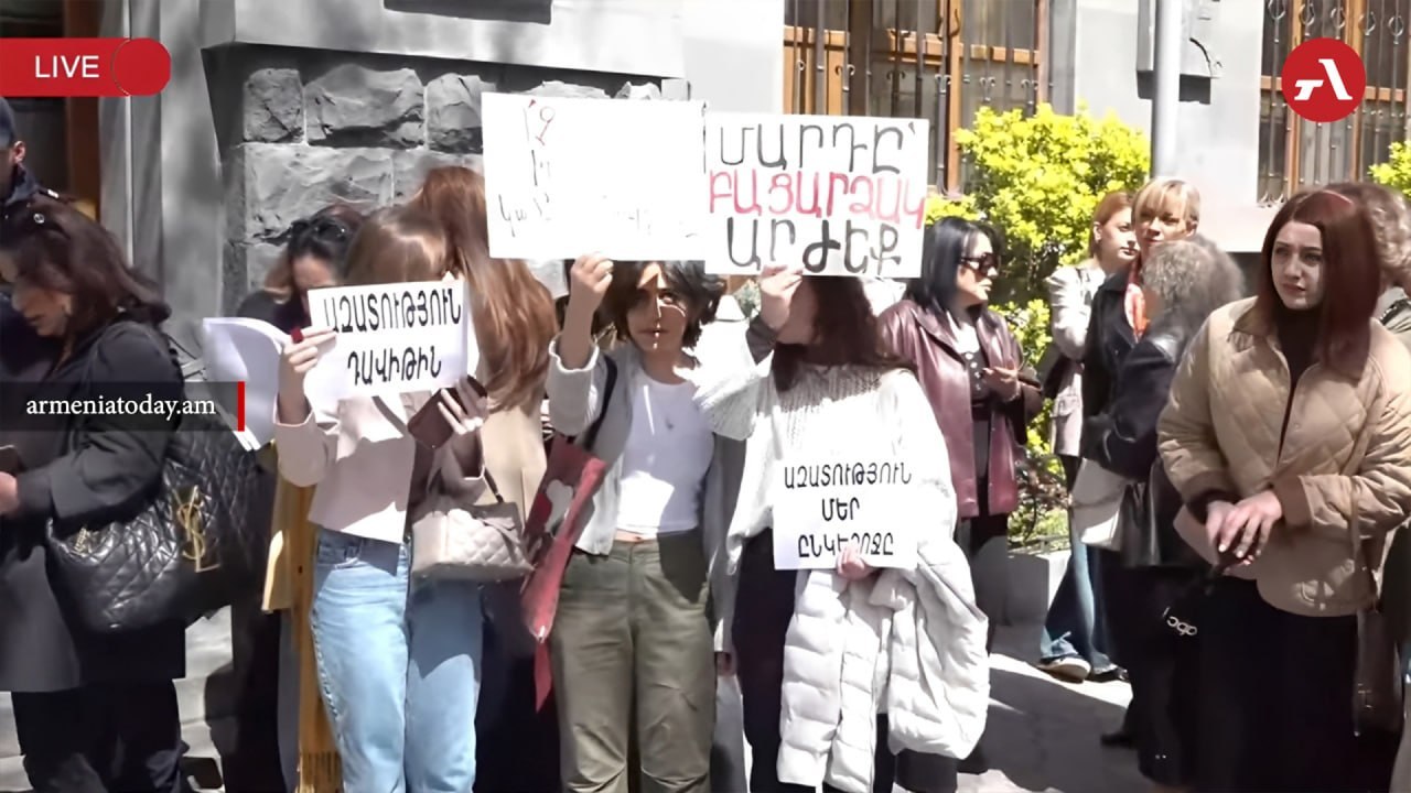 📍Сторонники 18-летнего Давида Минасяна, арестованного после инцидента с премьером в церкви Святой Анны, проводят акцию у здания Генпрокуратуры, требуя встречи с генпрокурором Анной Вардапетян.