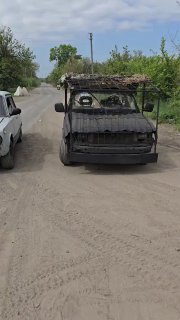 ❗Парная работа российских оптоволоконных FPV-дронов «ждунов» по автомобилю и живой силе противника в одном из украинских логистических противодроновых коридоров.