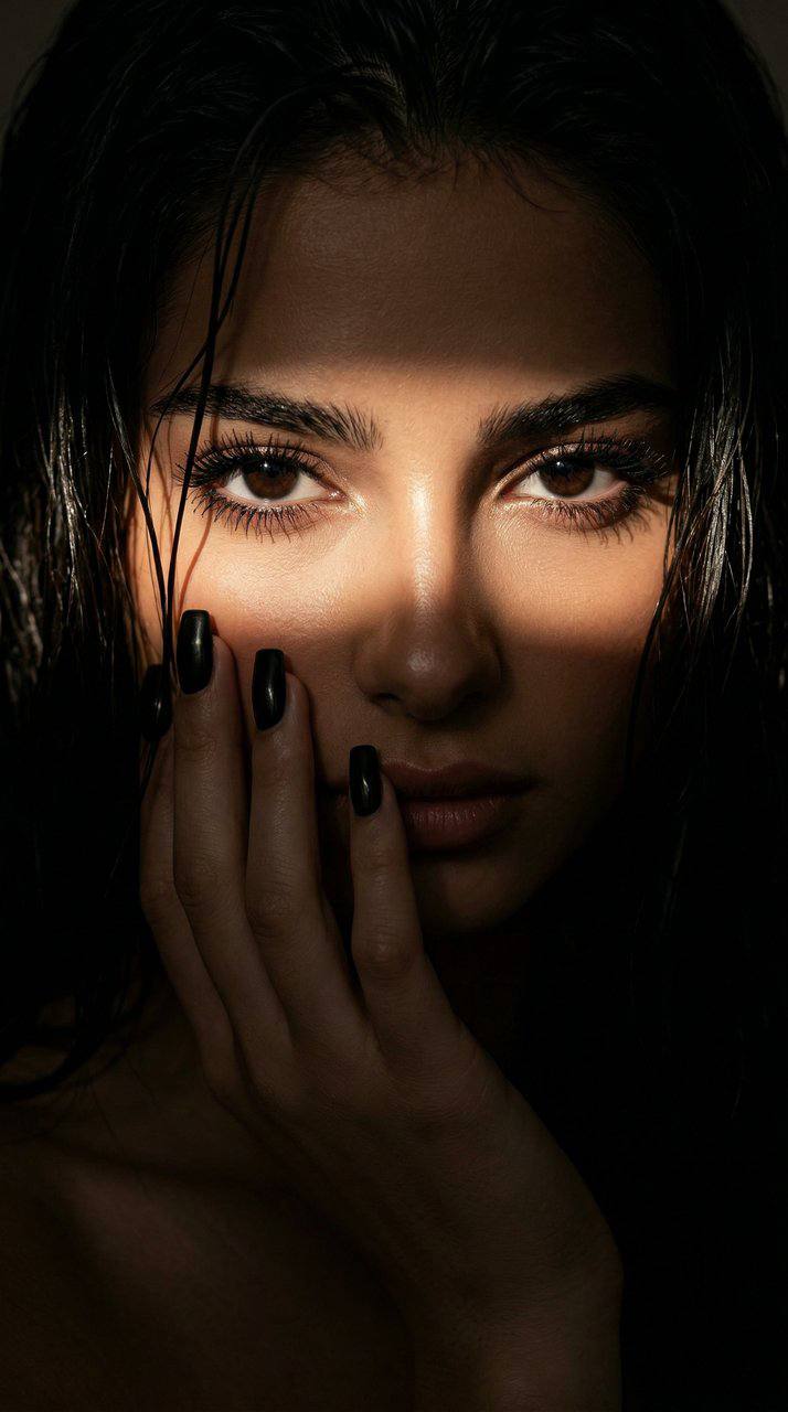 Используй лицо с моей референс-фотографии (face reference), сохрани узнаваемость на 100% : не меняй овал лица , форму носа , брови, губы, цвет глаз, длину волос и цвет волос. Лежит на кровати, корпус слегка повернут в три четверти к камере; руки красиво подпирают лицо, уровень груди направлен к объективу для подчёркивания силуэта.Одежда: чёрный облегающий топ-майка в рубчик с кружевной окантовкой с вырезом , низкая посадка джинсов , минимальные аксессуары (маленькие серьги), живот открытый, на пупке страза . Волосы волны, распущенные, несколько прядей свободно падают на плечи и грудь для естественной динамики, часть волос красиво закрывает половину лица .Макияж мягкий естественный гламур : лёгкий контур лица и бронзер, матовая кожа, аккуратно оформленные брови, мягкий дымчатый макияж глаз , нижняя слизистая растушевано синим карандашом, длинные ресницы с красивым лисьим изгибом придает соблазнительный взгляд , губы с глянцевым финишем .Фильтр: тёплый контрастный фильтр с чуть пониженной насыщенностью, повышенным контрастом ; небольшой эффект плёночного зерна для текстуры. Крупный портретный кадр от талии вверх, снято близко с небольшим наклоном камеры немного ниже уровня лица (слегка снизу), жёсткое фронтальное освещение (встроенная вспышка телефона), фон однотонная стена; соотношение сторон 9:16