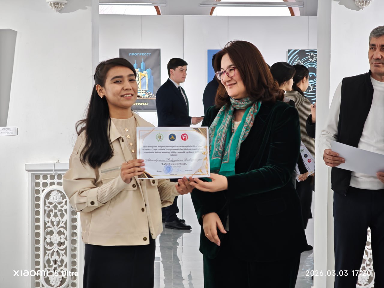 Ko`rgazmada ishtirok etgan dizayn fakulteti "Reklama va amaliy grafika ‘" yo‘nalishi talabalari: Suyunova Shamsiqamar, Xolmatova Dildora, Axmatjonova Robiyabonu, Abrayeva Sayyora, Abduqahhorova N., Garabayeva Leyla, Kim Yuliya, Samira Ravanova, Ruxshonaxon Ro`ziyeva, Tilashkova Anastasiya, Venera Hafizova.