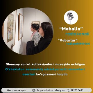 🎙Xabar berganimizdek, Shanxaydagi Shanxay san’at kolleksiyalari muzeyida ilk bor O‘zbekiston zamonaviy miniatyura rassomlari asarlarining namoyish etildi. Bu milliy san’atimiz uchun muhim xalqaro voqea hisoblanadi. Bunday ko‘rgazmalar nafaqat ijodkorlar uchun yangi imkoniyatlar yaratadi, balki O‘zbekistonning boy madaniy merosini jahon miqyosida targ‘ib qilishga xizmat qiladi.