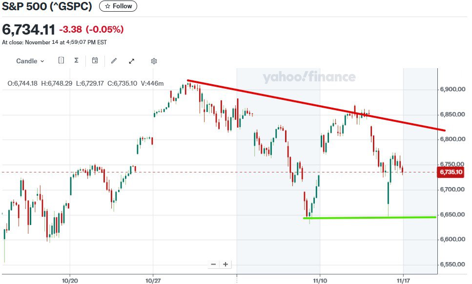 Тому, з одного боку, потужний повторний відскік від 6650 ніби то – за розвертання догори, але це лише техніка. Настрої погіршуються. Тут ще звіт Nvidia у середу, і інвестори настроєні дуже прискіпливо. Достатньо показати зниження темпів зростання, і… з’явиться можливість прикупити дешевше, як по МЕТА, коли фундаментально причин падати не було, але папір просадили на 20% ні за що.