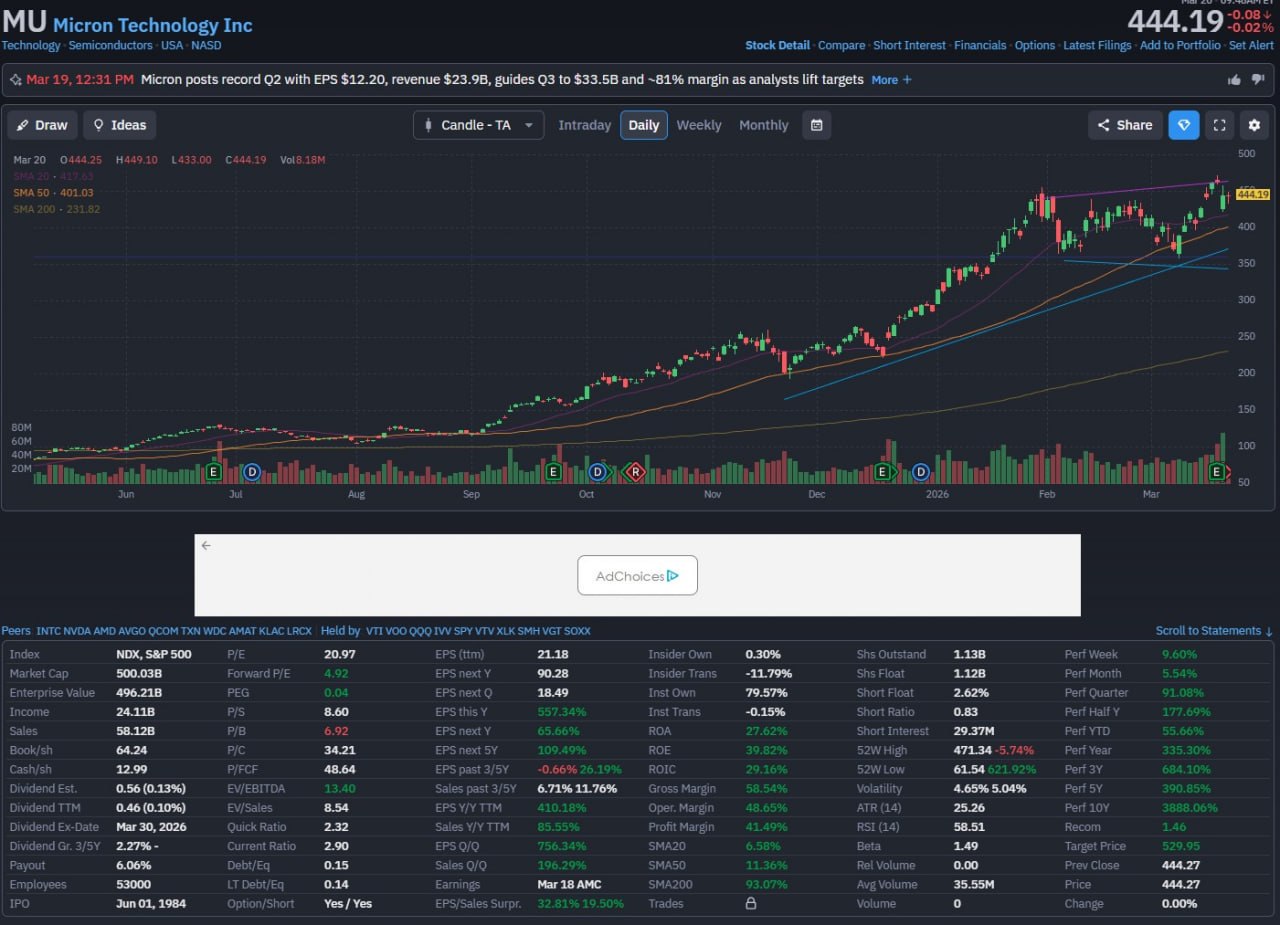Тому не дивно, що вже вночі таргет по Мікрону на Фінвізі (який падає на 5% на пост- і пре-маркеті), вже поміняв дві останні цифри місцями. Був 439, а став 493. Найбільш смішно притримання виставлення самих оцінок у відповідні табличці ресурсу. Тим більше, що якщо таргет формується автоматично від оцінок, що надходять, то і оцінки могли б показуватися автоматично.