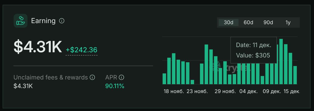 Я приложил скрин моих активов в HLP, а также видно график за последнее время, как зарабатывали, а точнее теряли трейдеры на Хайпере