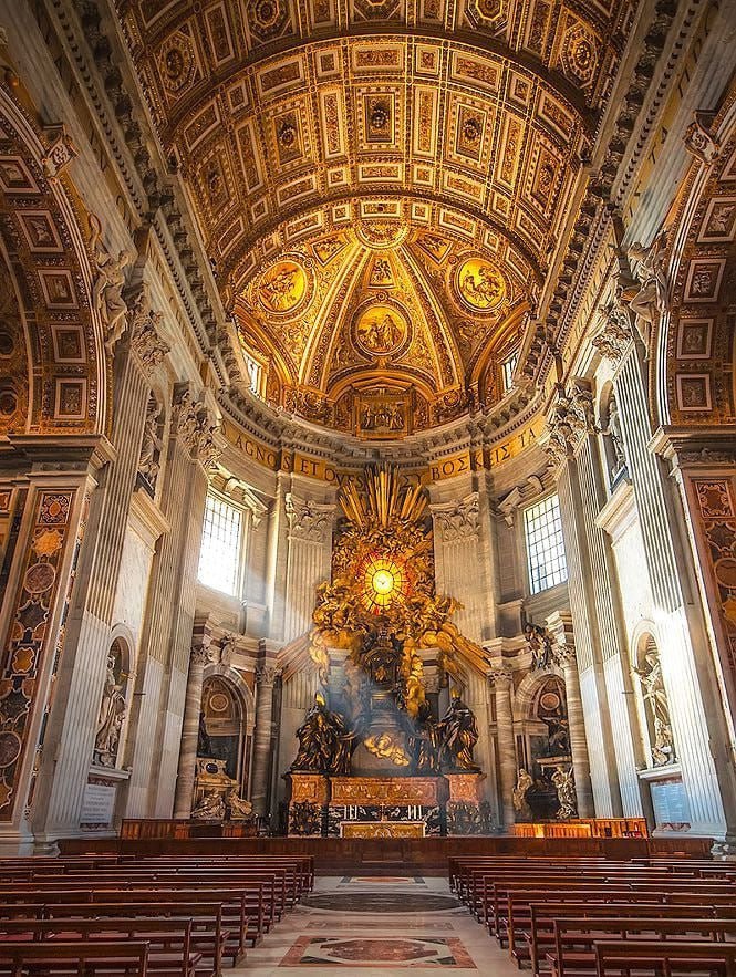 ⚫️Это католический собор, центральное и наиболее крупное сооружение Ватикана, крупнейшая историческая христианская церковь в мире. Над созданием собора трудилось несколько поколений великих мастеров: Браманте, Рафаэль, Микеланджело, Бернини, Мадерна.