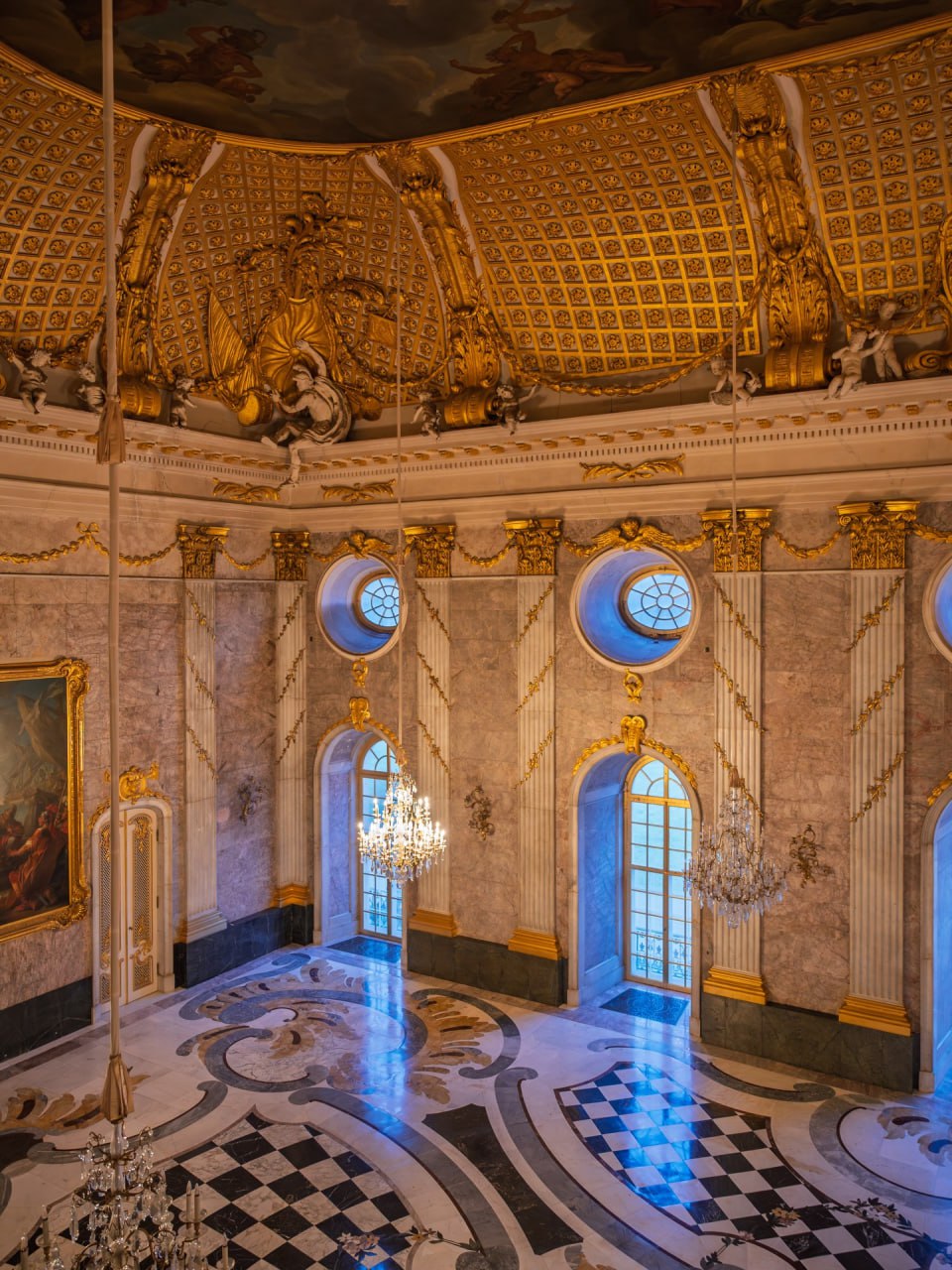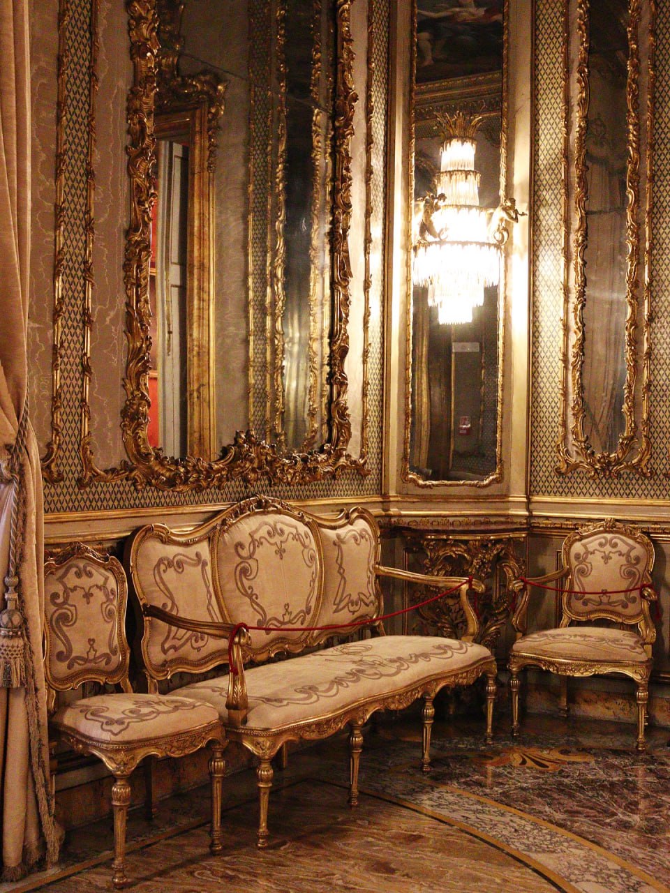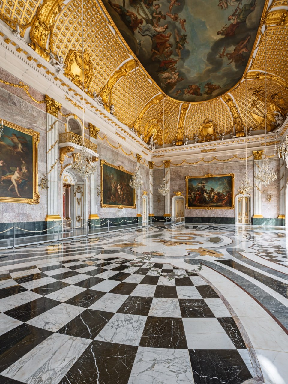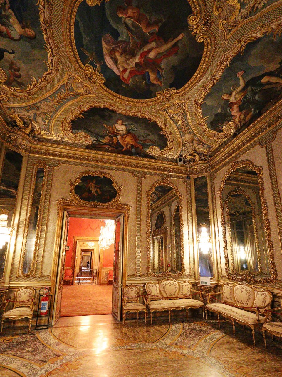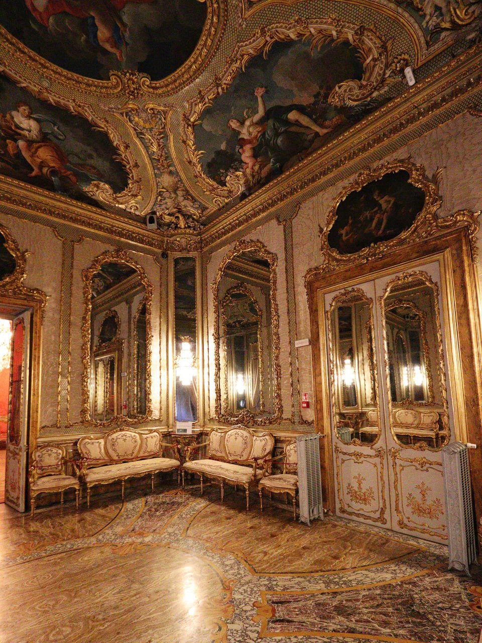 ⚫️Туалет Венеры, возможно, одна из самых крошечных комнат галереи Дориа‑Памфили, но не менее прекрасна. Его создали в 1767 году как гардеробную для Леопольдины Савойской, супруги принца Андреа IV. Помещение слегка сумрачное, однако, если присмотреться, можно заметить, что узор пола идеально повторяет разделение потолка, созданного Стефано Поцци, где изображены Венера и четыре стихии.