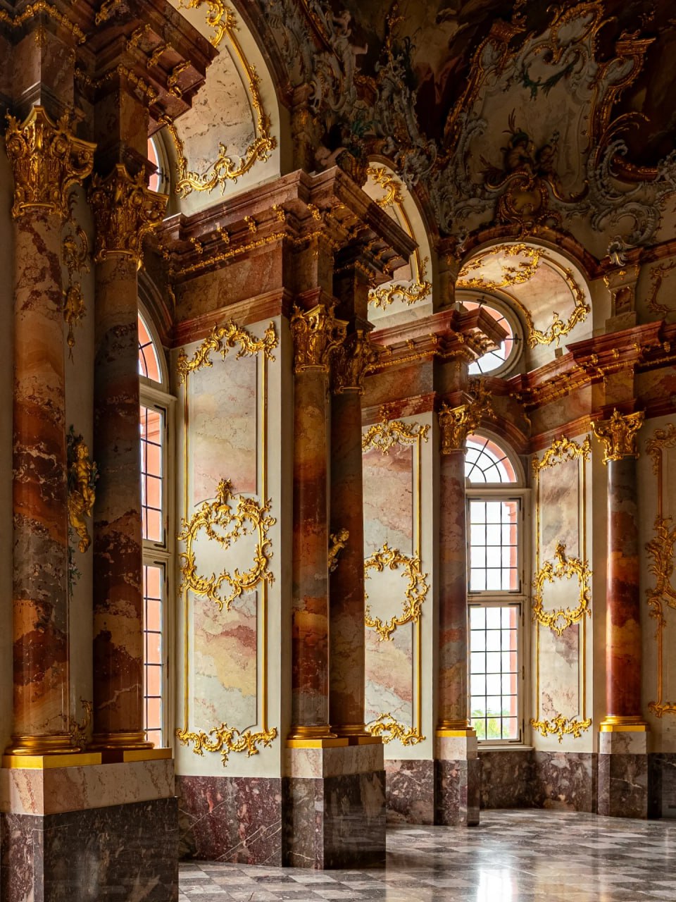 ⚫️Это комплекс зданий в стиле барокко в немецком городе Брухзаль в федеральной земле Баден-Вюртемберг. Известен красивым оформлением в стиле рококо, в частности входной лестницей, которая считается одним из лучших примеров своего рода в любом дворце в стиле барокко.