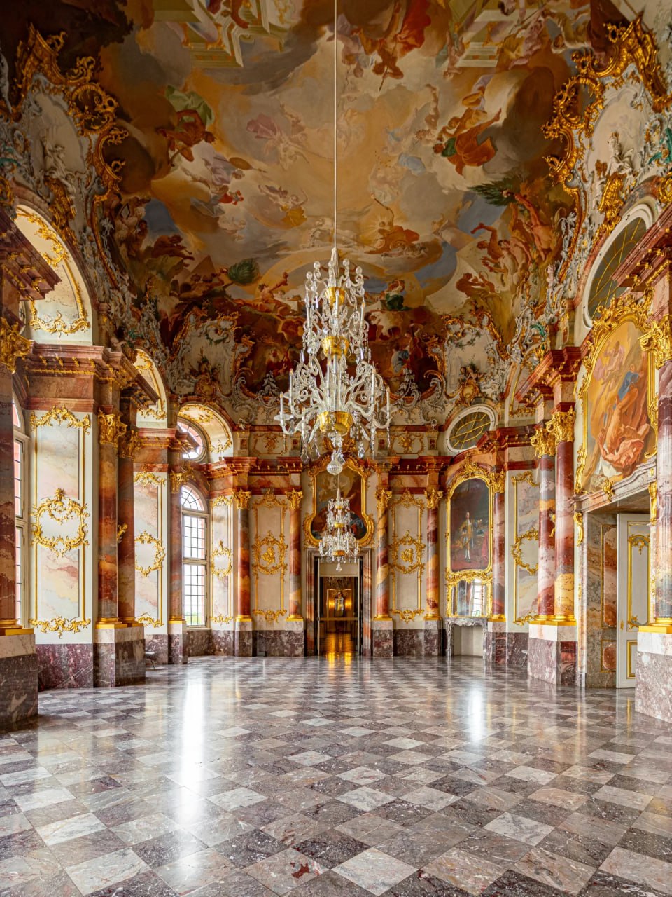 ⚫️Здесь находится Мраморный зал, возможно, самое величественное помещение во дворце. Невероятно, но это помещение было полностью реконструировано в 1970-х годах после трагического разрушения во время американского воздушного налета 1 марта 1945 года.