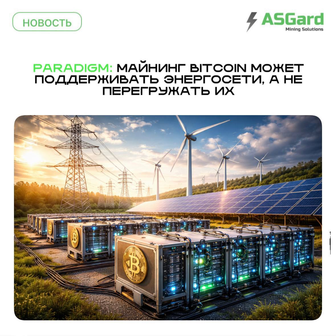 🗣️Paradigm: майнинг Bitcoin может поддерживать энергосети, а не перегружать их