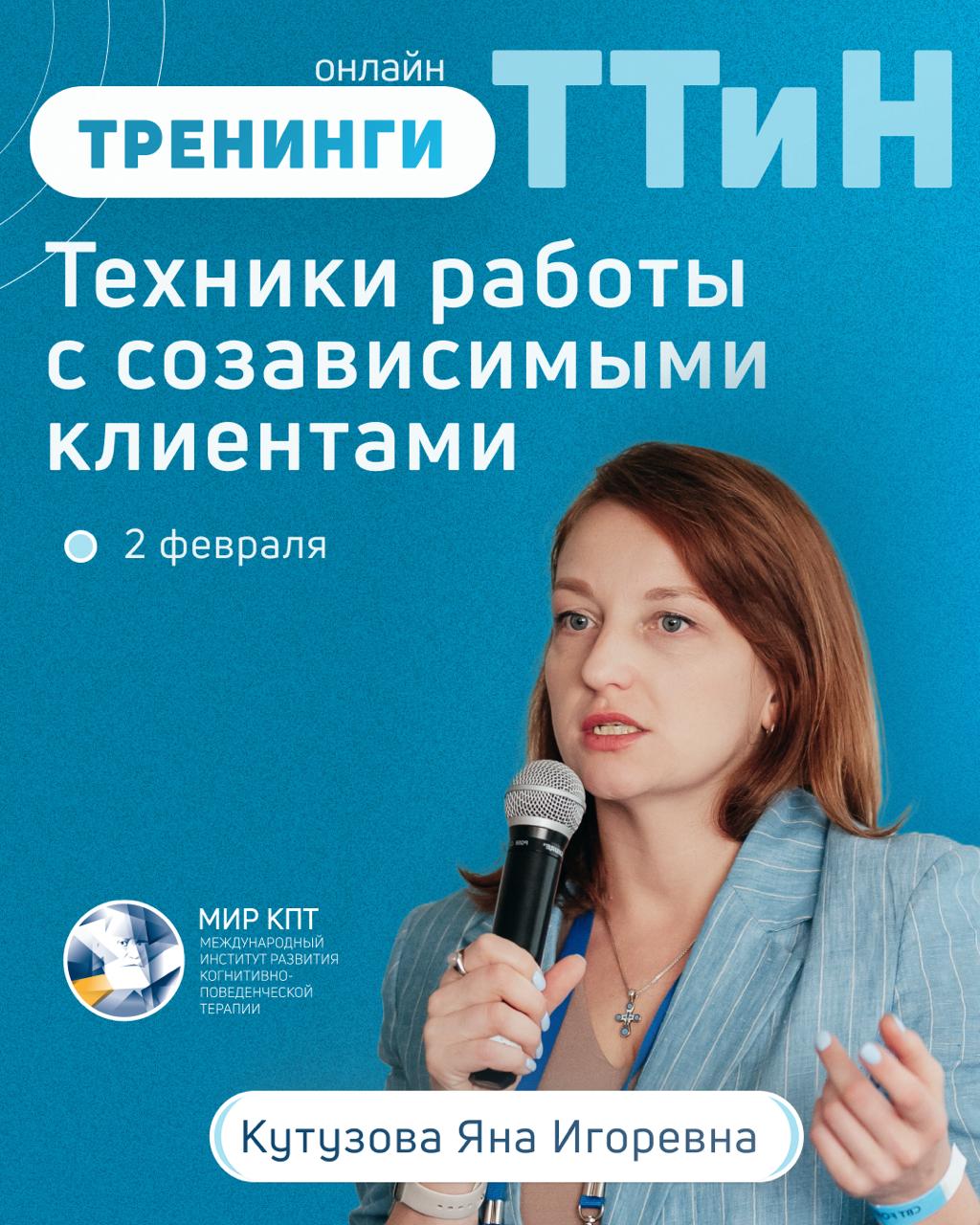 Ведущая ТТиН: Ольга Александровна Мошкова — клинический психолог, аккредитованный супервизор и преподаватель Ассоциации КПП, тренер Базового и Продвинутого курсов КПТ, интервизий, тематических тренингов, руководитель Удмуртского отделения Ассоциации КПП. Имеет сертификацию «Beck Institute CBT Certified Clinician» («BICBT-CC») Института конгитивно-поведенческой терапии Бека, обучалась в Институте Альберта Эллиса (Albert Ellis Institute), у таких специалистов как Кейт Добсон (Keith Dobson), Дебора Добсон (Debora Dobson), Роберт Лихи (Robert Leachy), Артур Фримен (Arthur Freeman), Джефри Янг (Jeffrey E. Young), а также на курсе по подготовке супервизоров Донны Судак (Donna Sudak).