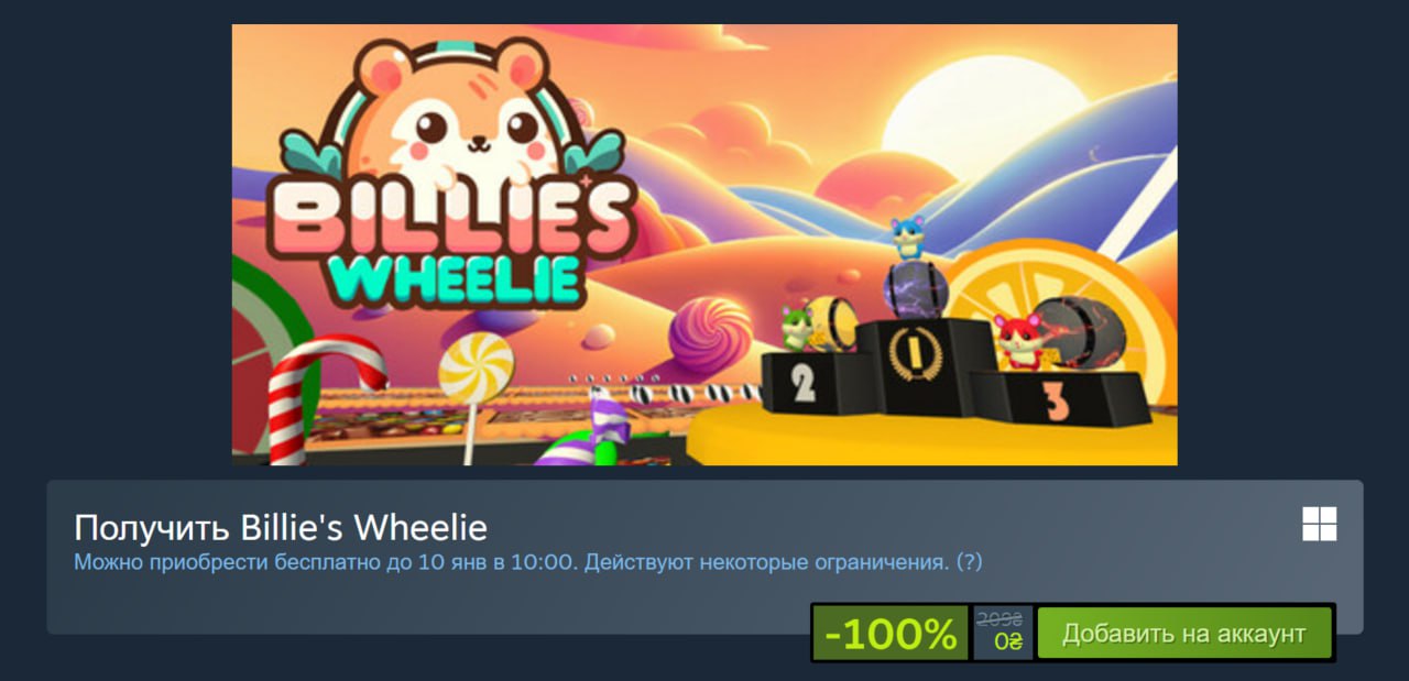 🎁В #Steam бесплатно отдают Billie's Wheelie