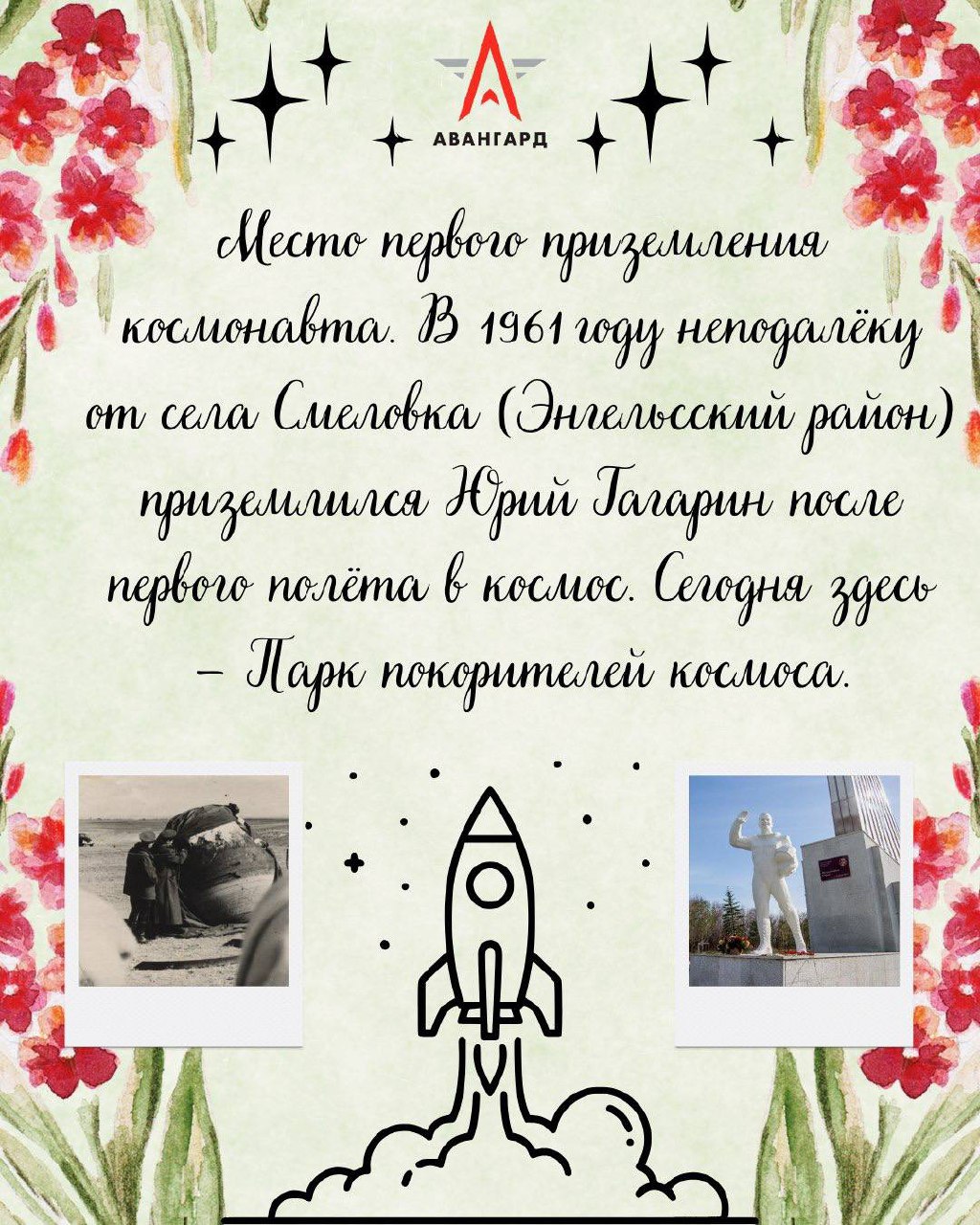 🇷🇺Саратовская область - именно там приземлился Юрий Гагарин после своего исторического полета в космос.