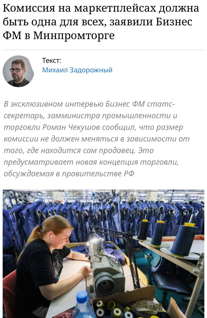 Минпромторг требует равных комиссий на маркетплейсах как для российских, так и иностранных продавцов, пишет «Бизнес ФМ».