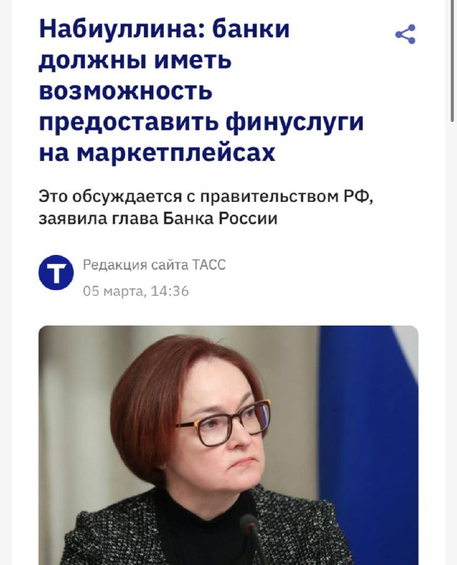 «Мы сейчас с правительством обсуждаем так называемую открытую модель предоставления любых финансовых услуг на маркетплейсах. У всех банков должна быть возможность предложить свои бонусы, свой кешбэк на маркетплейсы, и то же самое касается других финансовых продуктов - например, кредитов и рассрочек», — пояснили глава ЦБ.