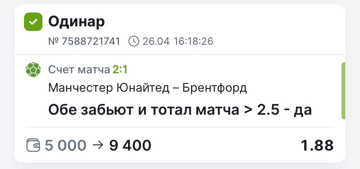 ✅ Да есть же заход! Дожал всё-таки Брентфорд. Поздравляю всех с заходом.