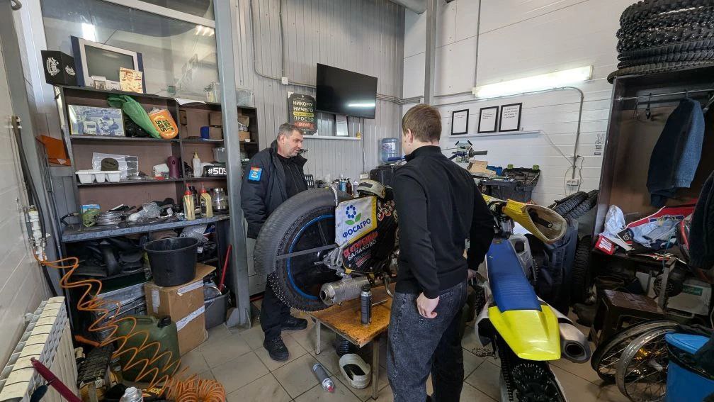 Сегодня посетил клуб и пообщался с ребятами. Сейчас они проводят техническое обслуживание мотоциклов и готовятся к предстоящим заездам. Зимой гонщики выезжают на треки на специальной шипованной резине.