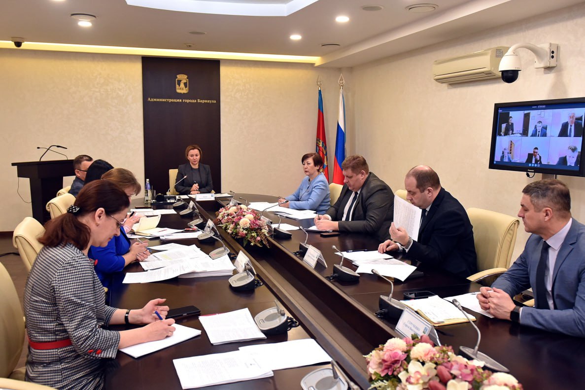 Участие приняли председатель Барнаульской городской Думы Галина Буевич, заместитель главы администрации города Андрей Курышин и Сергей Татьянин, председатели профильных комитетов, главы администраций районов города в режиме ВКС.