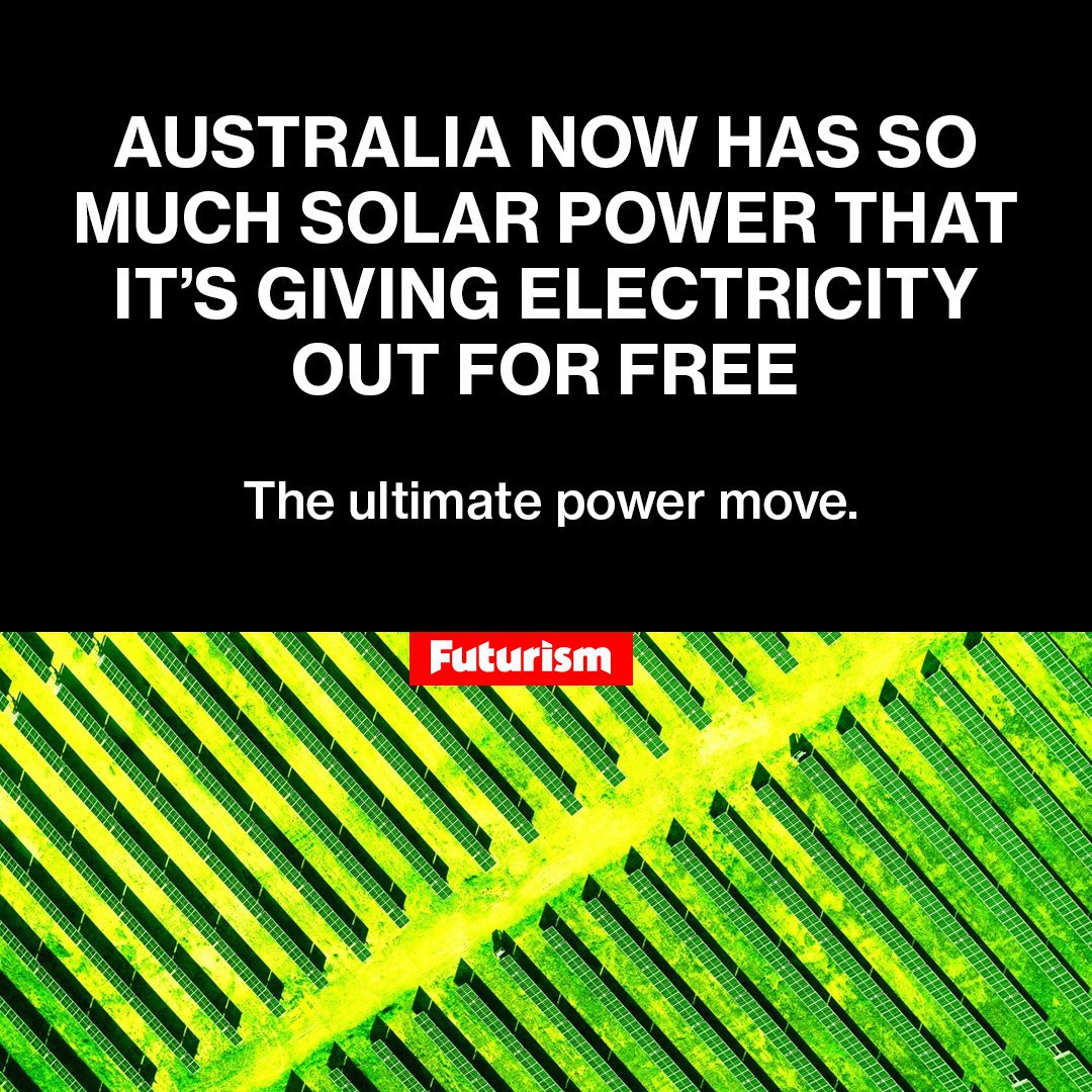 Australia is generating so much solar power that it's now giving it out for free. Residents in three of the country's states — New South Wales, Queensland, and South Australia, representing approximately 14 million people, or roughly half of the country’s population — will be receiving at least three hours of free solar power every day, even if they don’t have panels mounted to their roofs.
