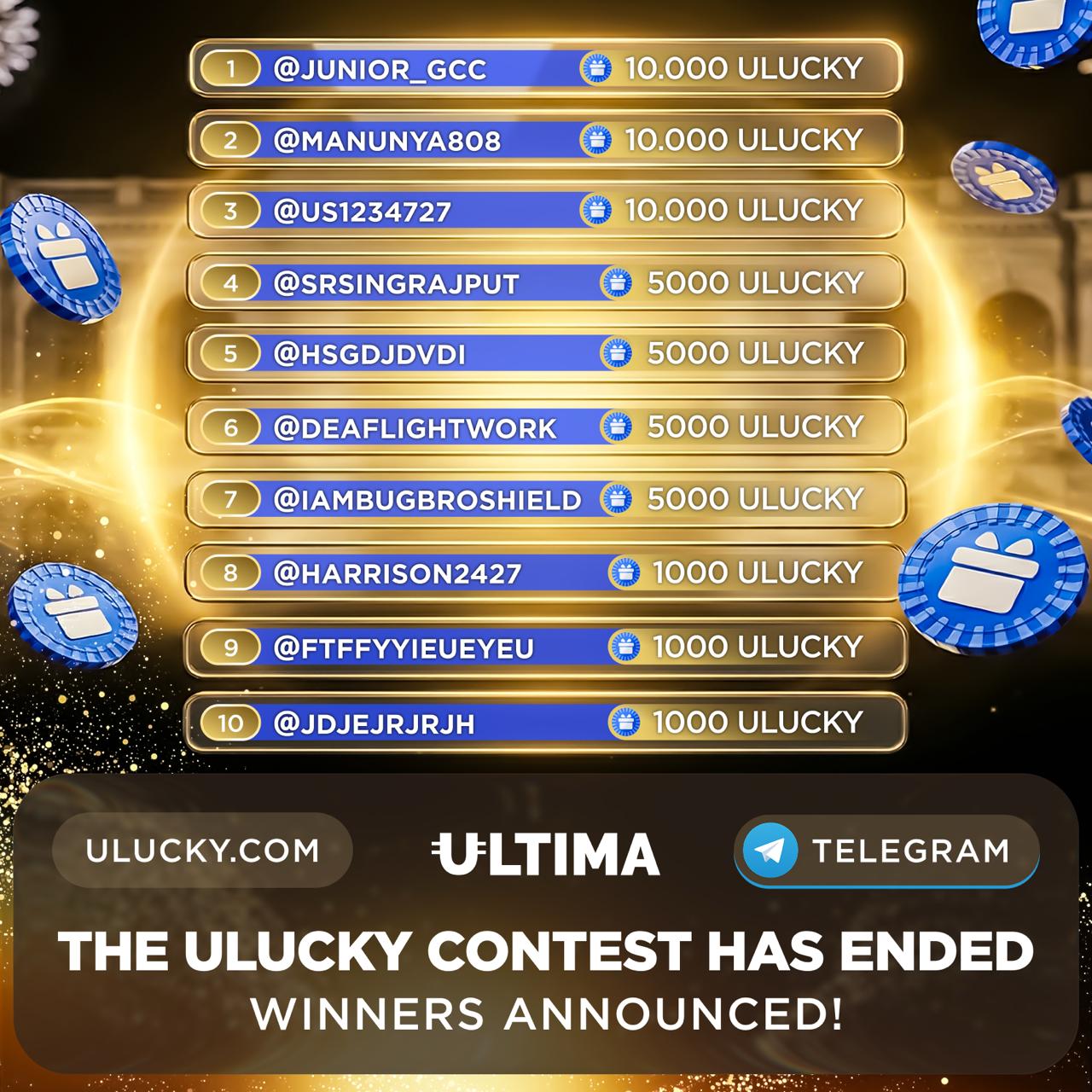 🥇 1st–3rd places: 10,000 ULUCKY tokens each