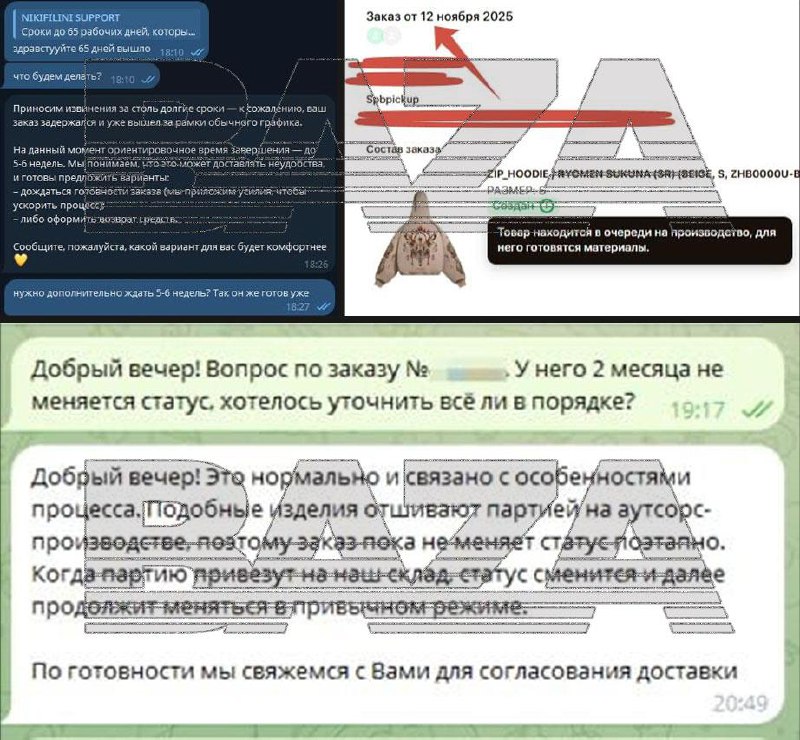Покупатели бренда NIKIFILINI попали в бесконечный цикл ожидания. Многие оформили заказы ещё в начале ноября во время большой распродажи 11.11, тогда производитель обещал отшить вещи за 30–65 дней и отправить людям. Но сроки вышли, а статусы заказов так и не сдвинулись с мёртвой точки.