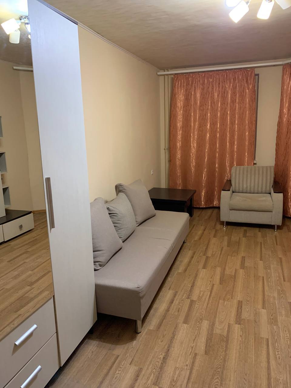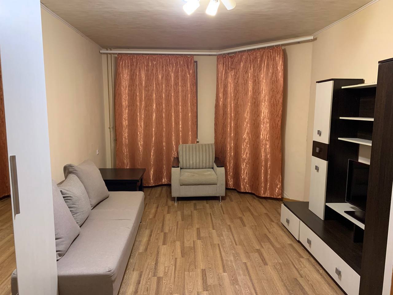 Квартира в хорошем состоянии после проживания одной порядочной семьи, которые съехали в связи с необходимостью расширения жилплощади. Квартплата включена в стоимость. Счетчики 50% льгота.