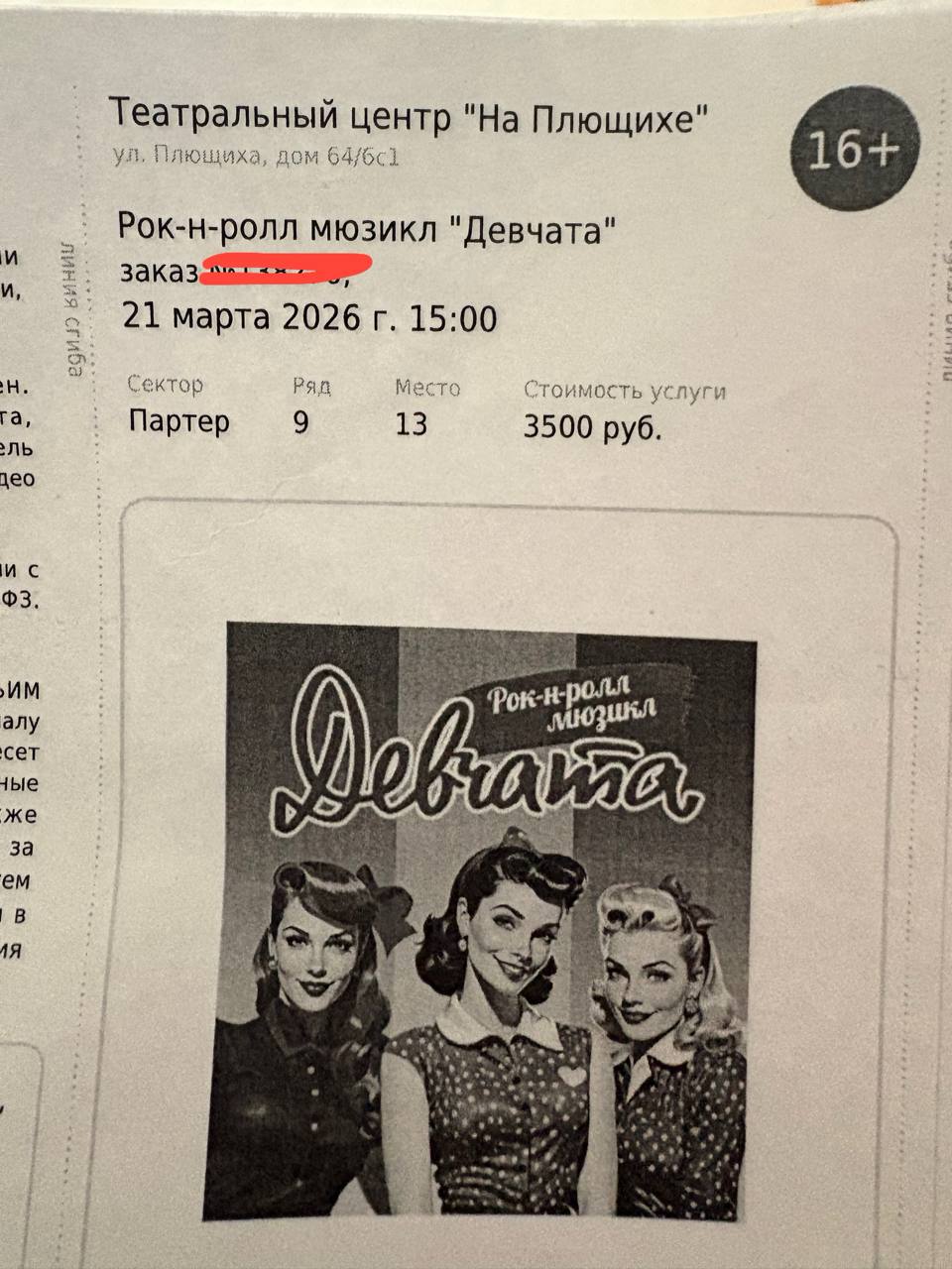 есть два билета на рок-н-ролл мьюзикл «девчата» на Плющихе на завтра. Не сможем пойти(