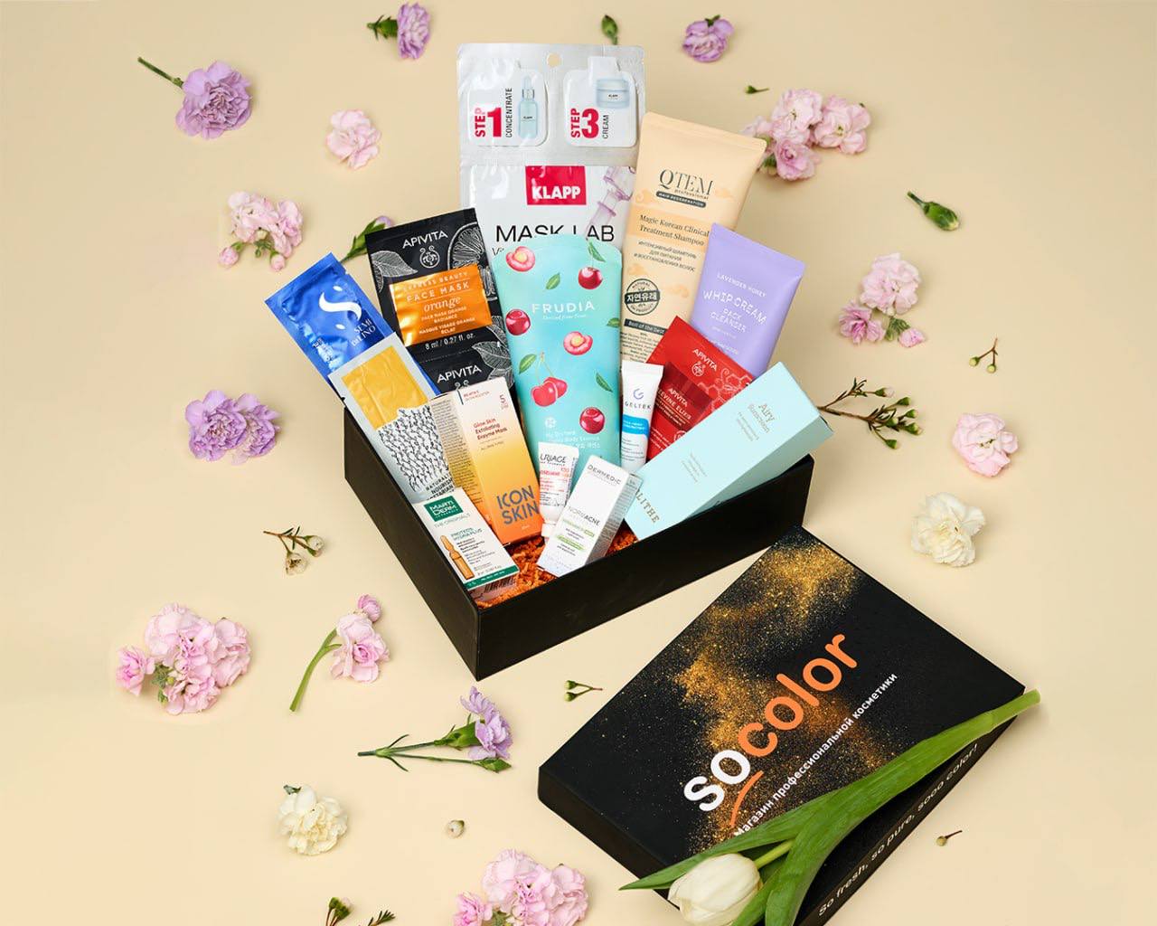 Внутри ещё более 20 продуктов от брендов среднего и премиум сегментов: Geltek, Guinot, Dr. Sea, Zeitun, Missha, Ederra, Beautific, Avene и других.
