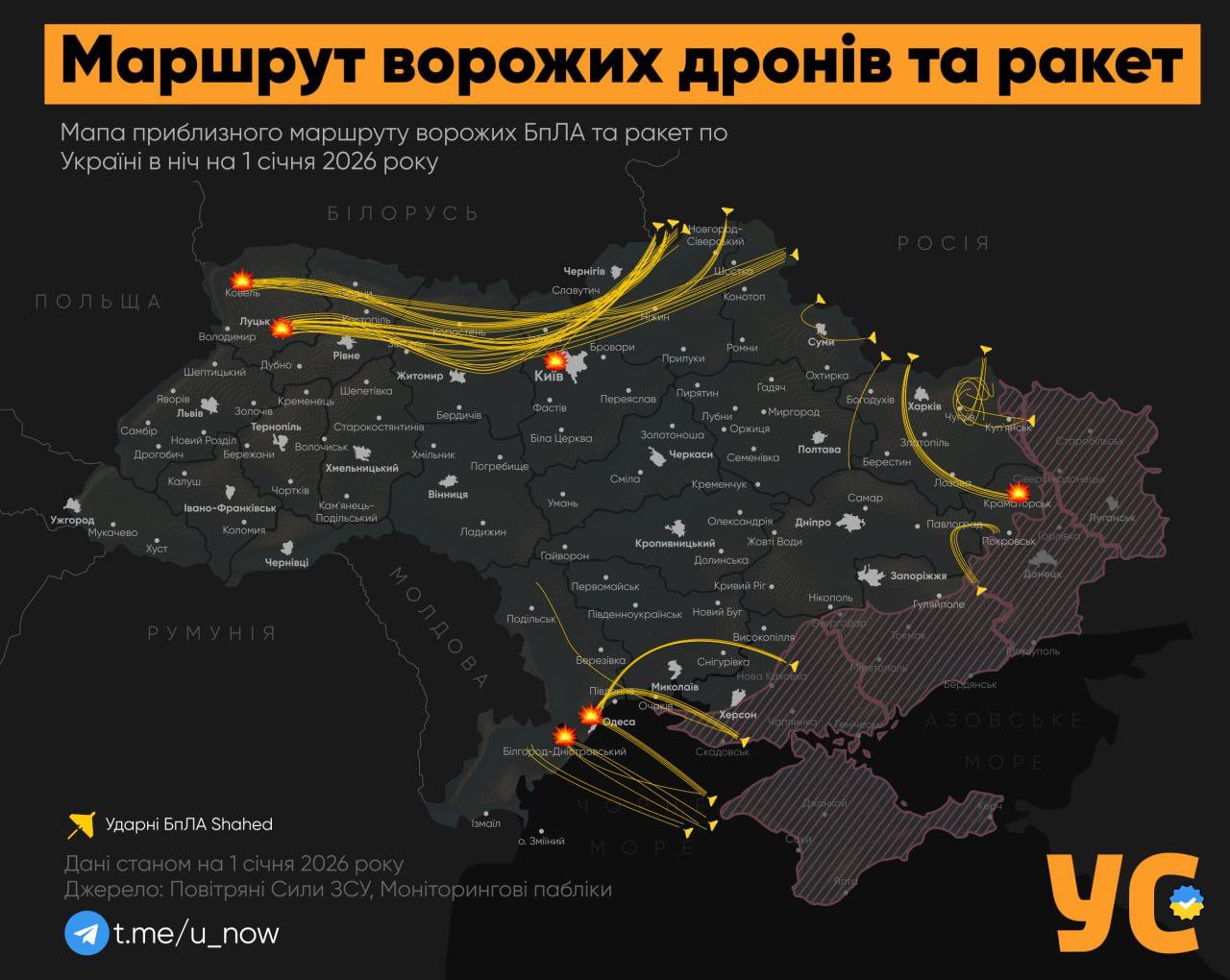 В новогоднюю ночь РФ нанесла удары по Луцку и Ковелю при помощи дронов, управляемых через ретрансляторы на юге Беларуси Целью ударов были объекты энергетической инфраструктуры в Луцке и железнодорожная станция в Ковеле.