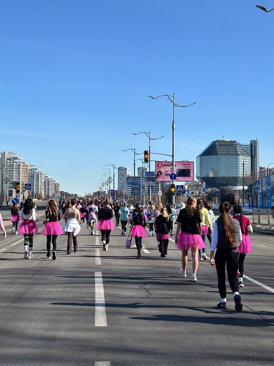 🏃‍♀Сегодня около 3 тысяч представительниц прекрасного пола, среди которых и солигорчанки, стали участницами "Красивого забега". Профессионалы и любители бежали по проспекту Независимости: от Национальной библиотеки до парка Челюскинцев, далее до Ботанического сада. Там они развернулись и вернулись обратно уже на финишную черту. Дистанция составила 5 км👍