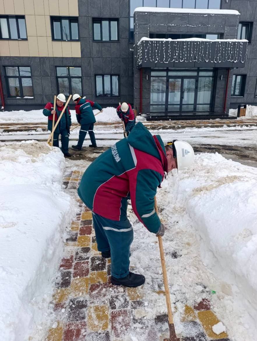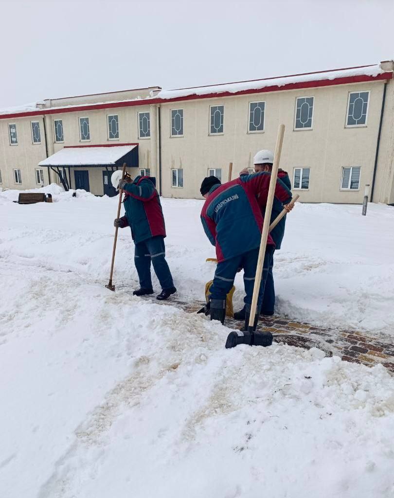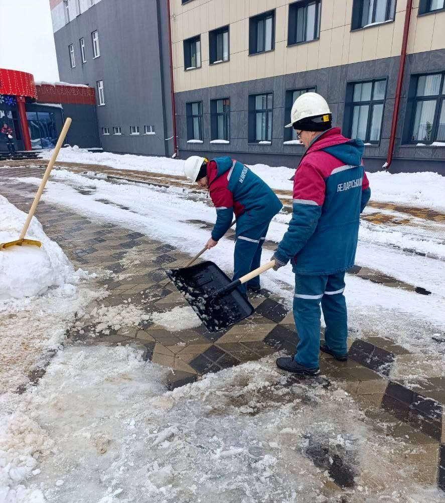 ❄️ После обильных снегопадов и перед наступлением больших морозов сотрудники 3 РУ производят очистку от снега и наледи территории рудоуправления и закрепленную территорию в Солигорске.