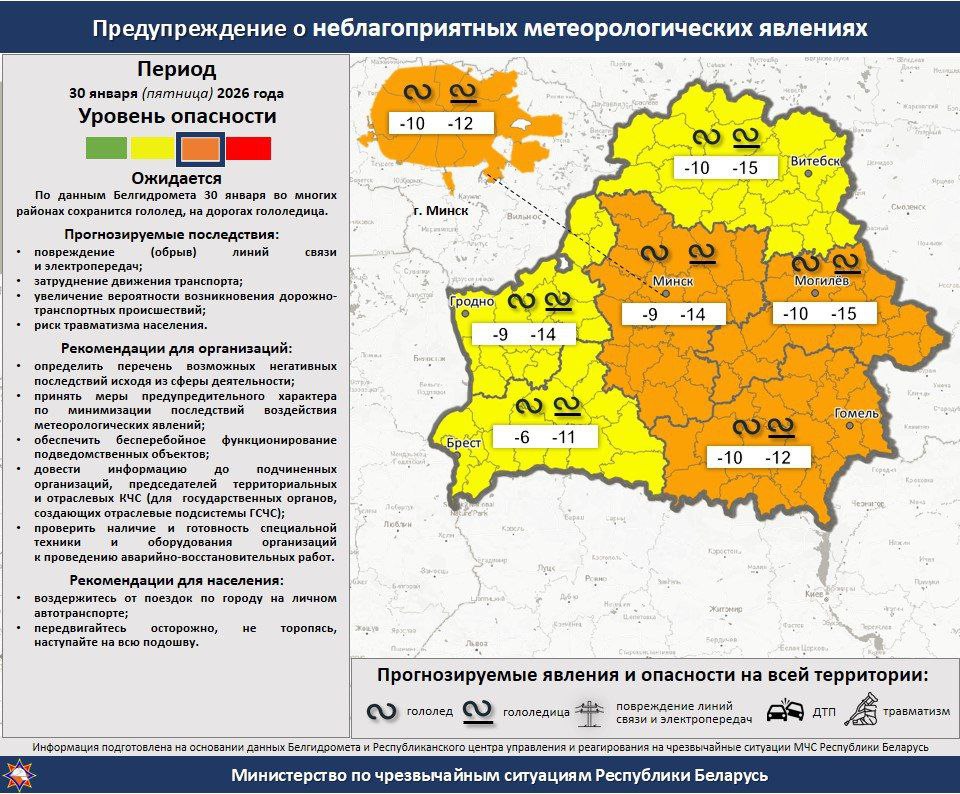 30 января (пятница) во многих районах республики сохранится гололед, на дорогах – гололедица.