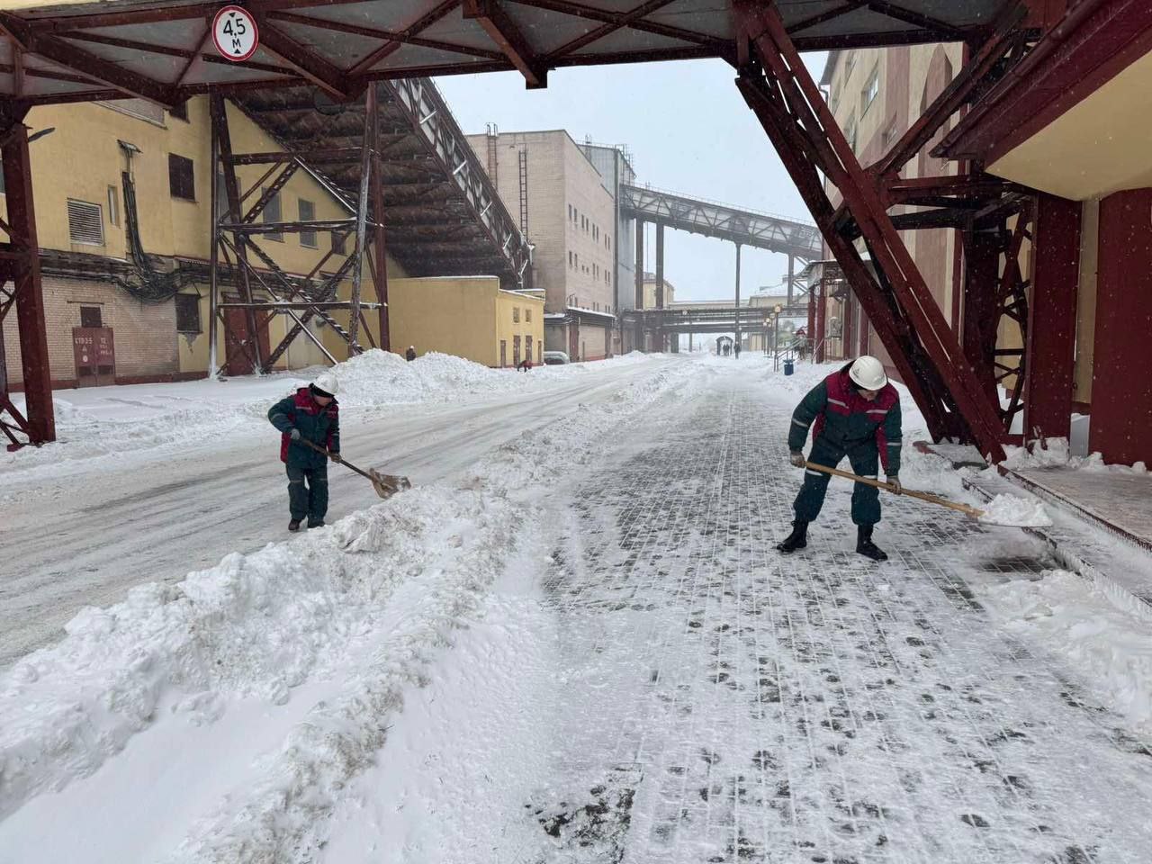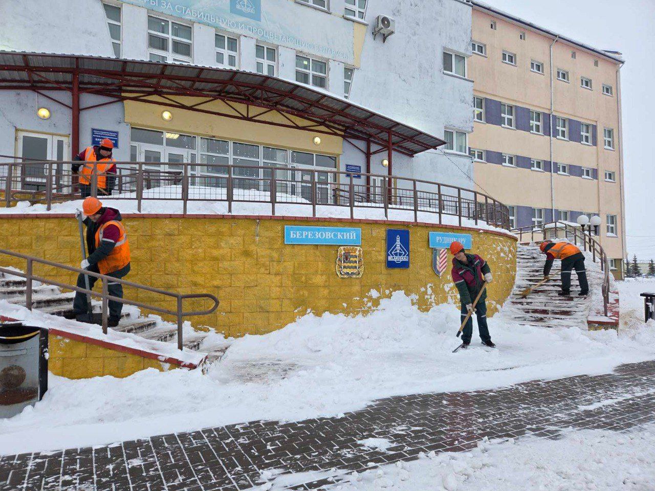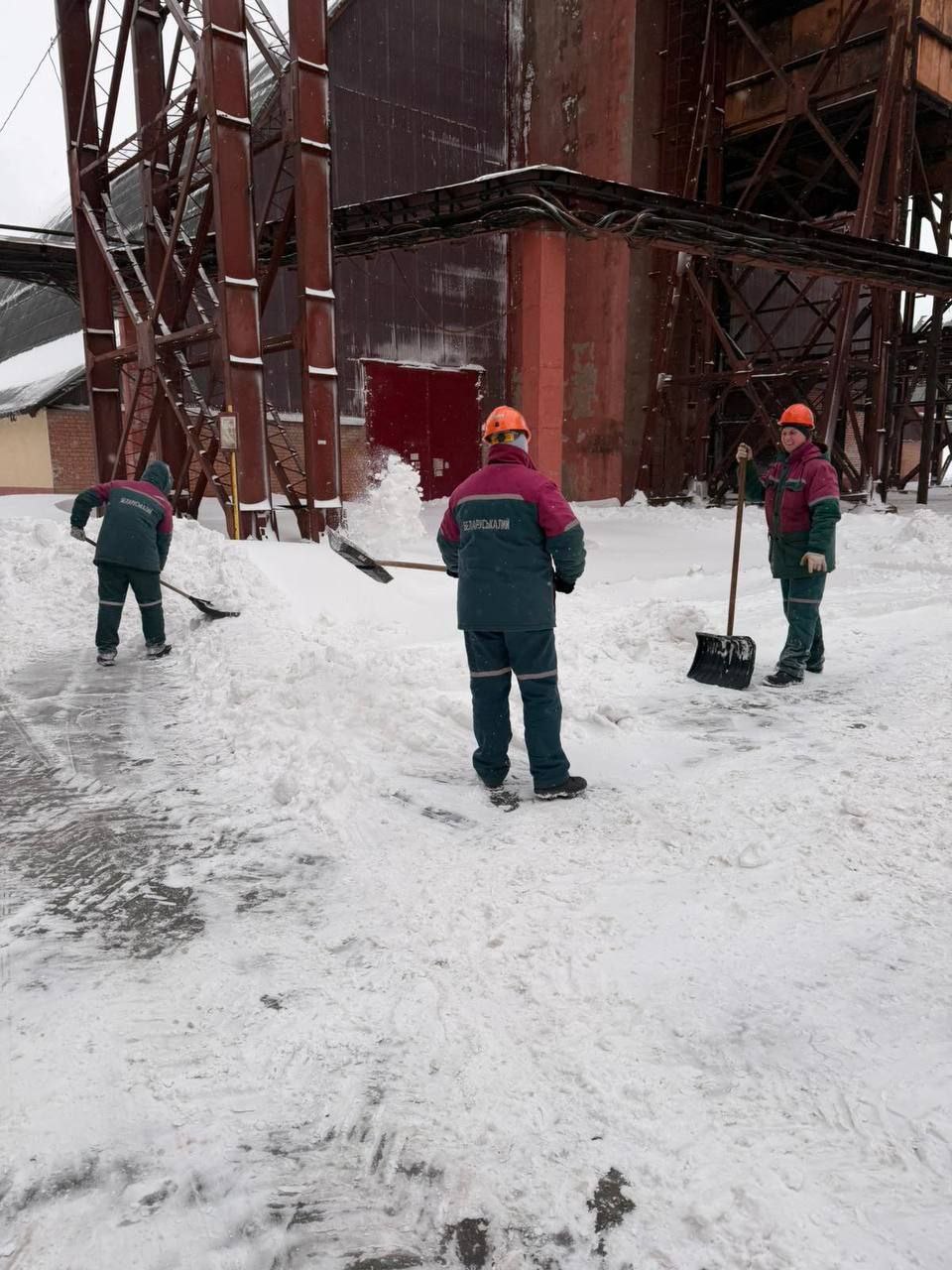 👍❄️Так расчищают снег на промплощадках Беларуськалия. В кадре - работники 2 РУ, 3 РУ и Березовского рудника 1 РУ