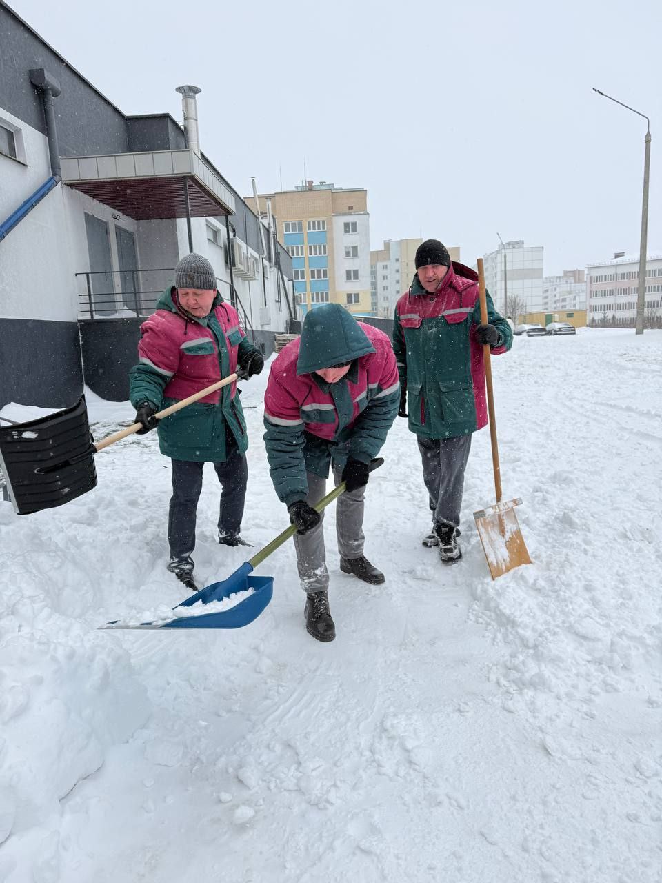 🔝Снежная тема - №1 сегодня. А калийщики - в первых рядах в борьбе со стихией. ❄️🚜🧹Уборка снега идет не только у здания управления и на промплощадках. Десятки сотрудников градообразующего предприятия помогают чистить центральные улицы и дворы. Мы - большая сила!💪
