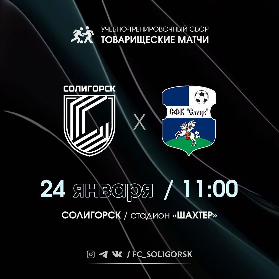 ⚽️ Товарищеский матч с ФК "Слуцк-2024" состоится 24 января в 11:00 🏟 Стадион "Шахтер"