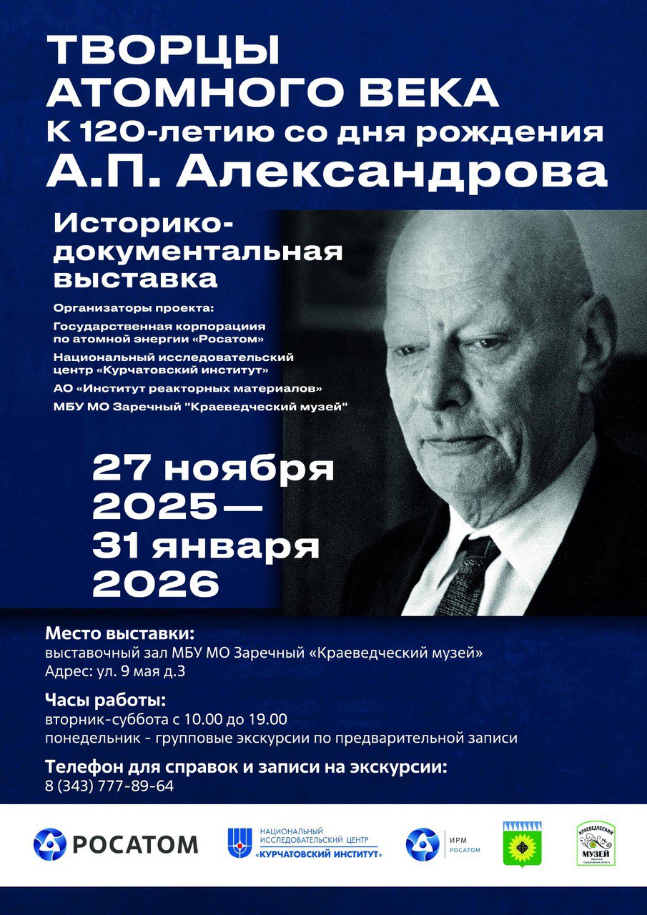 ТВОРЦЫ АТОМНОГО ВЕКА в Заречном! Открытие уникальной выставки состоится в четверг, 27 ноября, в 17.30. Выставочный зал краеведческого музея, ул. 9 Мая, 3