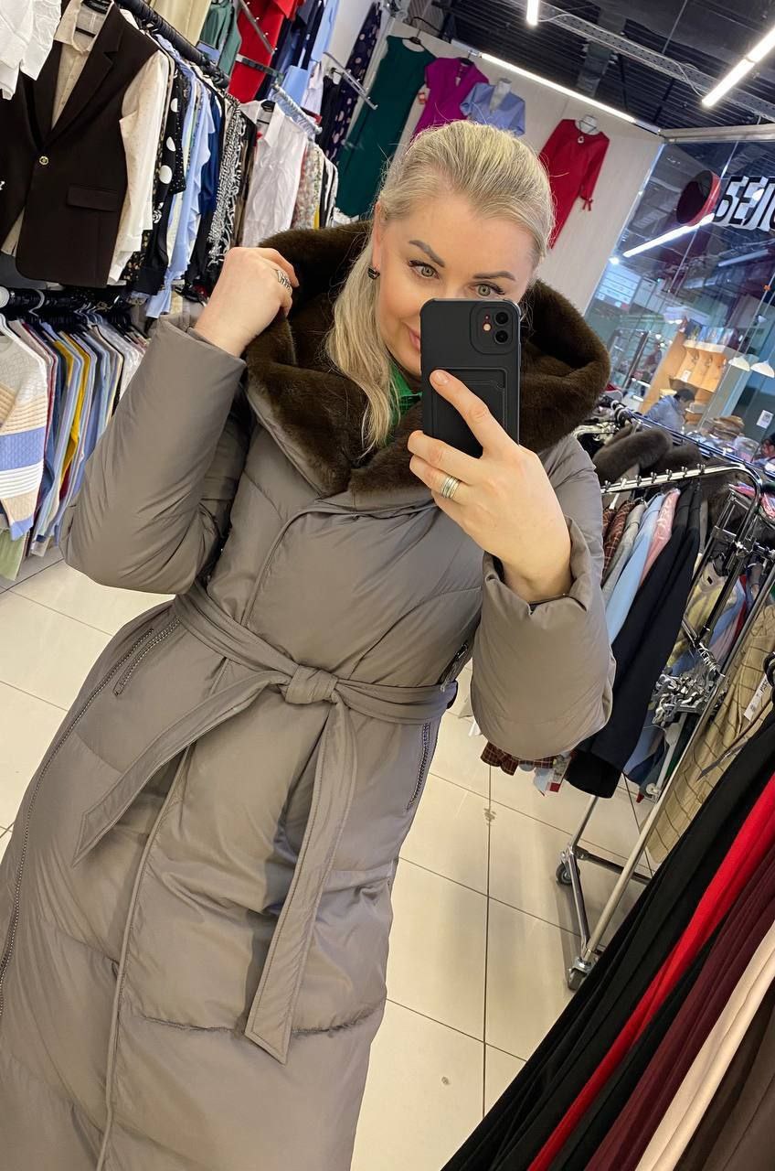❄️❄️ Современное пальто с капюшоном, отделка под мех норки. Можно носить с поясом и без.