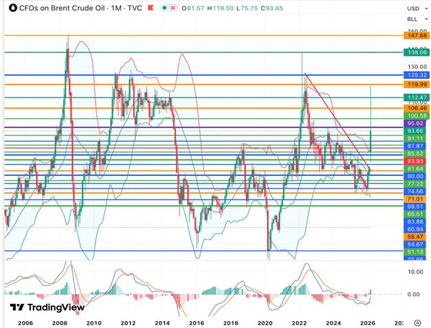 📊С технической точки зрения котировки нефти Brent в марте прервали долгосрочный медвежий тренд и остаются на самых высоких уровнях с осени 2023 года, но пока не закрепились выше пика сентября 2023 года 95,91 долл/барр, демонстрируя сильную перекупленность.