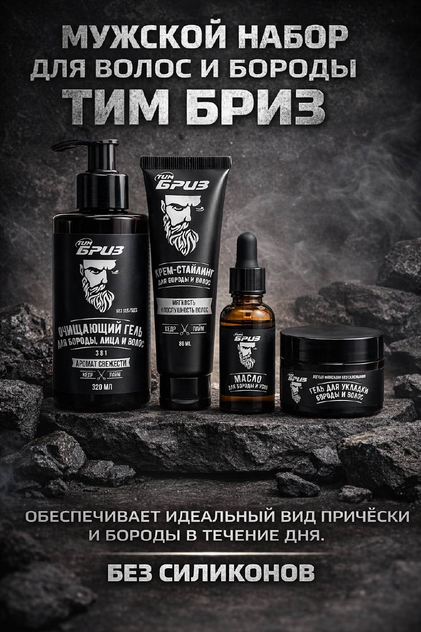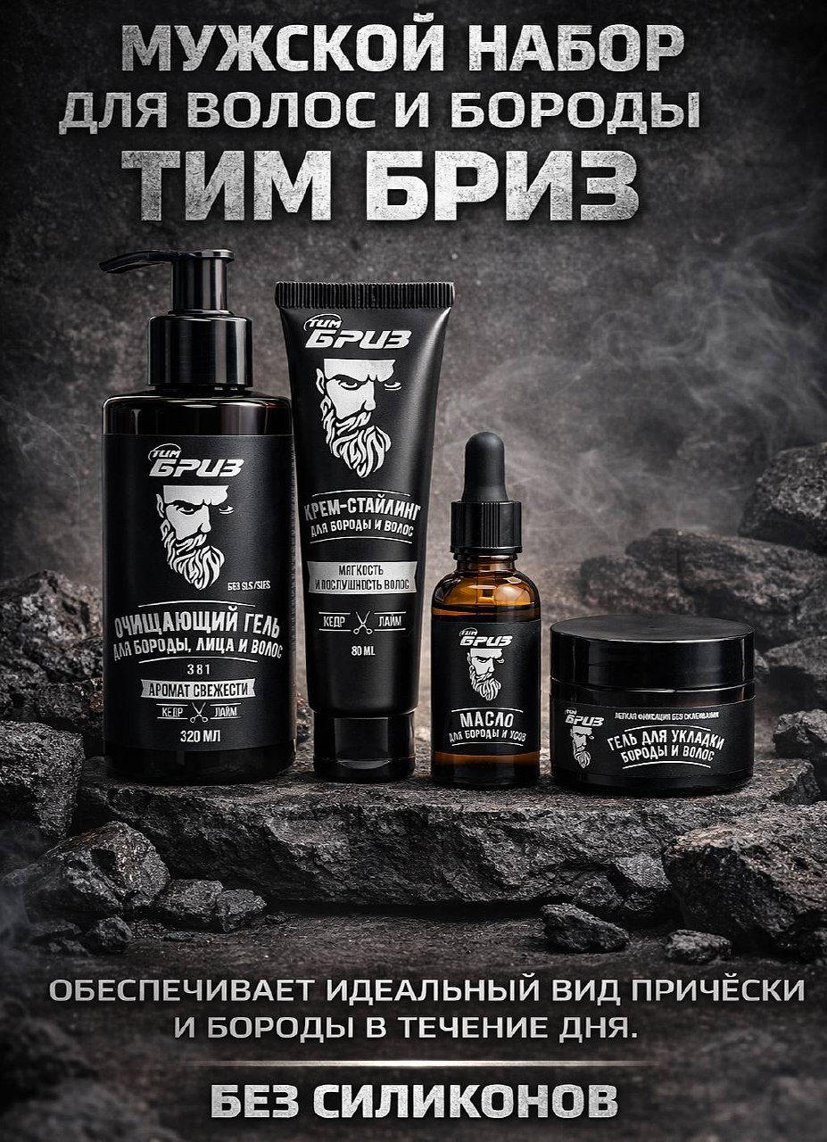 ТИМ БРИЗ. Набор для бороды и волос мужской.