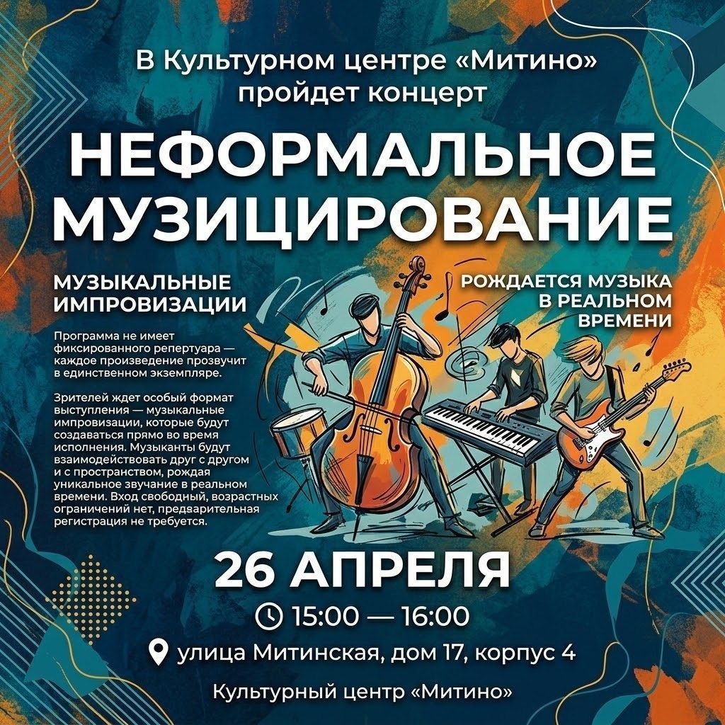 🎵 В Культурном центре «Митино» пройдет концерт «Неформальное музицирование»