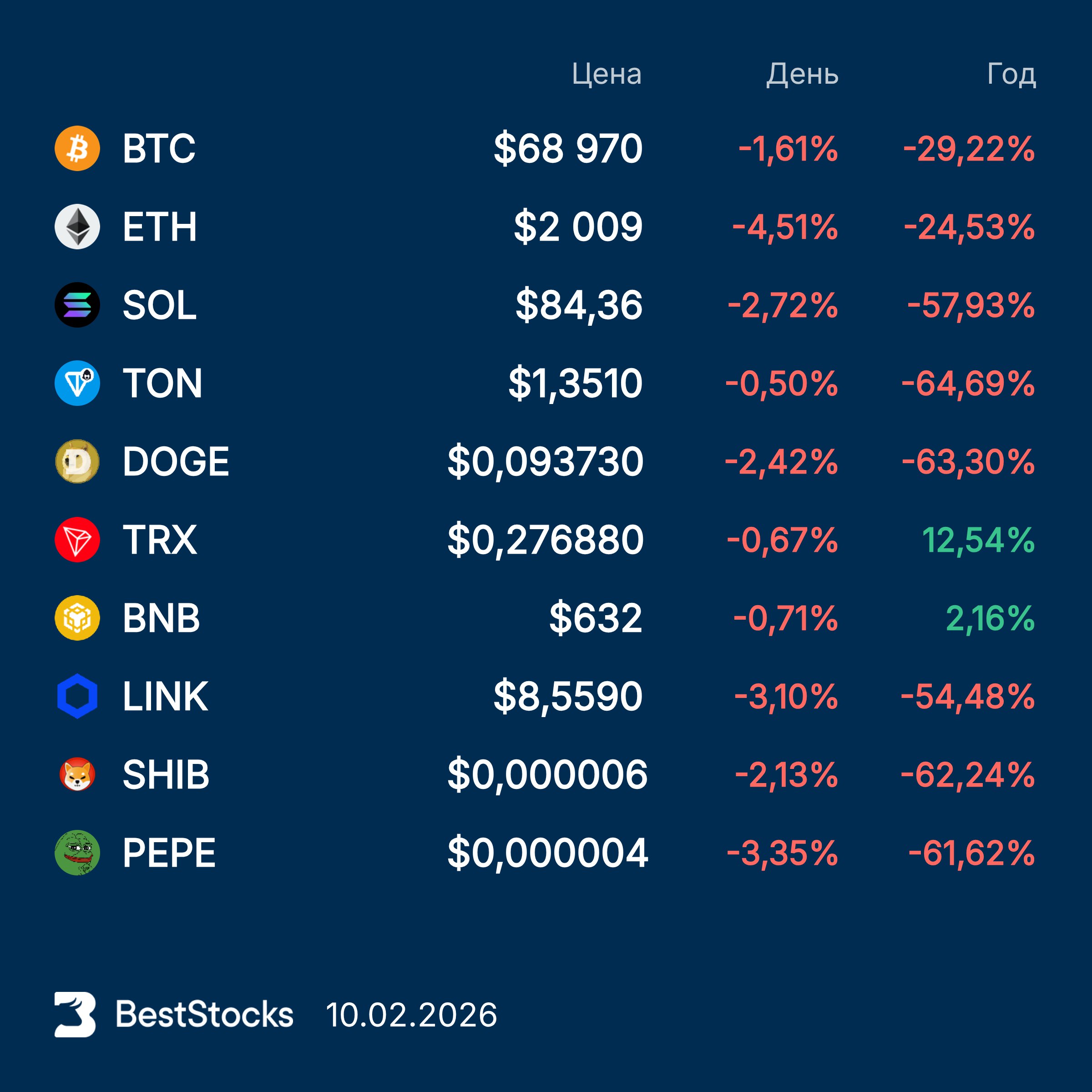 📉 Больше всех падают: