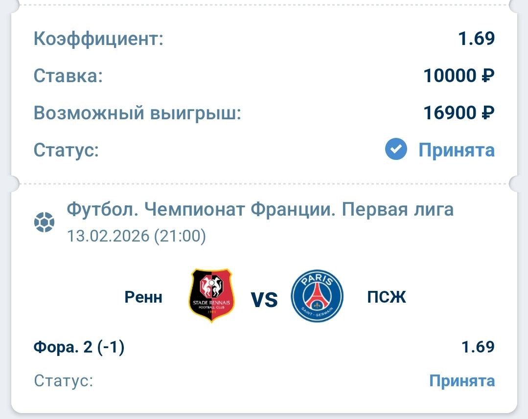 ✅ Прогноз: фора (-1) ПСЖ