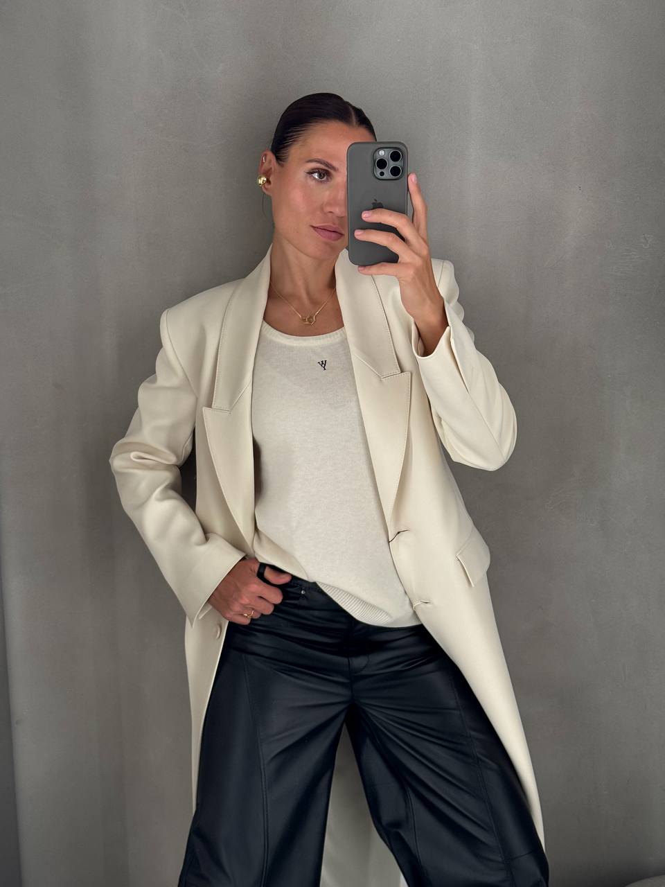 Накинула, добавила аксессуары и образ готов. И это всегда эффект вау: молочный цвет работает как магнит для окружающих 💔