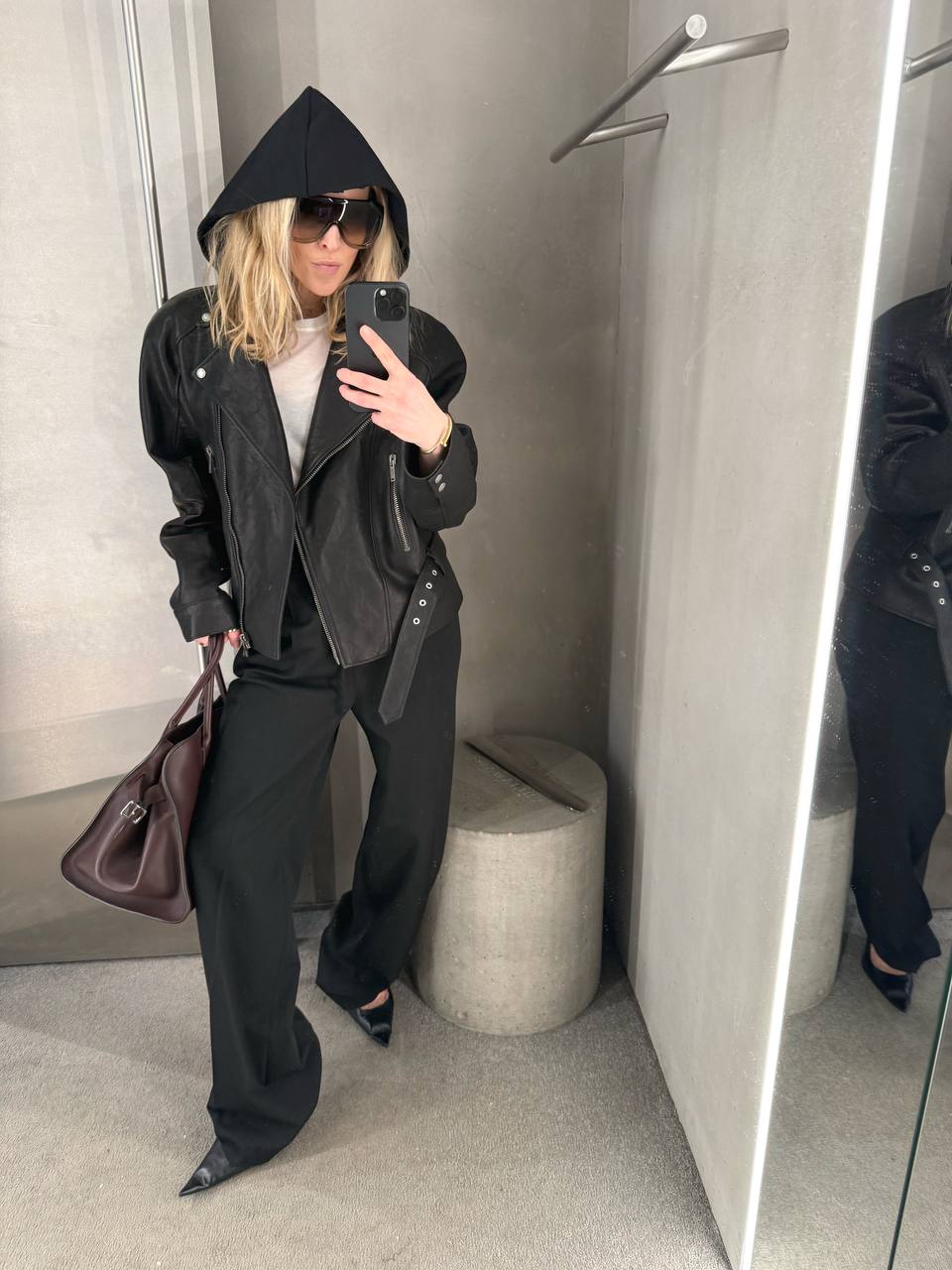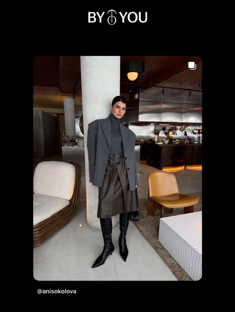 Главное, что черный снимает вопрос цвета — остается только форма, текстура, силуэт. Язык для тех, кто говорит структурой, а не декором. Для тех, кто не нуждается во внимании, но получает его.