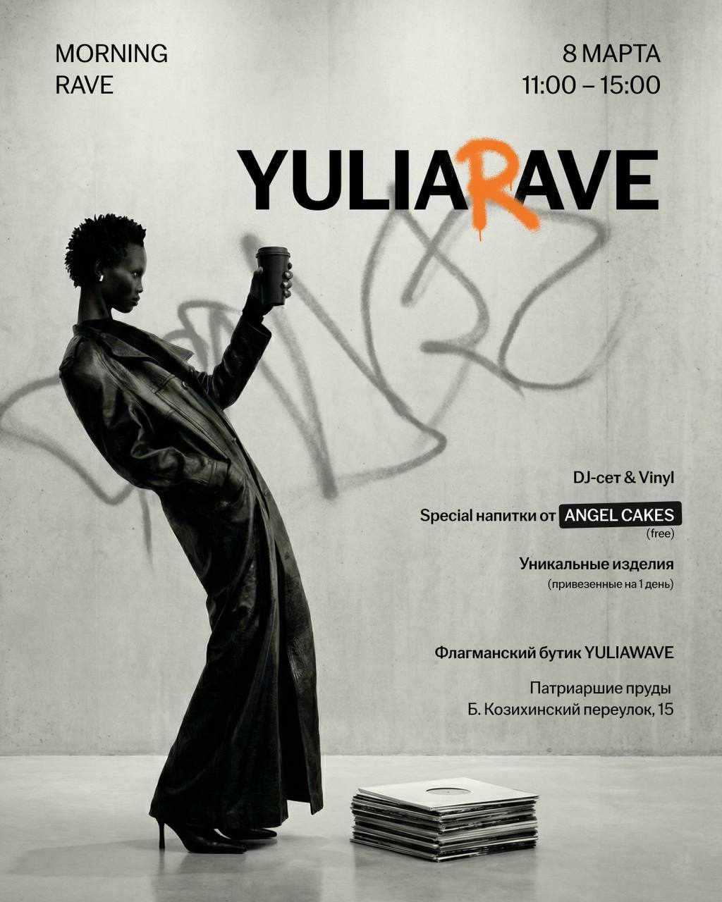 С 11:00 - 15:00 вас ждет DJ-сет, специальное меню напитков от нашего партнера ANGEL CAKES и уникальные изделия Модного Дома, которые мы привезём в этот день (от последних экземпляров, до лимитированных подарков к 8 марта).