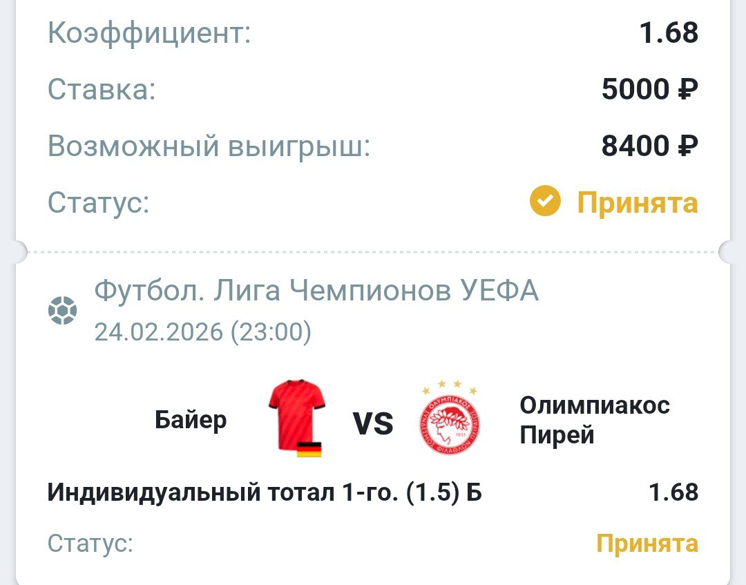 «Байер» на своем поле не уступил в 8 из 10 последних матчей в Лиге чемпионов, а поражения пришлись на противостояния с грандами европейского футбола – «Баварией» и ПСЖ. У греков есть победы на выезде в ЛЧ-2025/26, но добились их подопечные Хосе Луиса Мендилибара над соперниками, уже прекратившими участие в турнире. При этом двум представителям топ-5 лиг «Олимпиакос» в гостях уступил без шансов. Греки попытаются переломить ход противостояния и пойдут вперед. Но не отличающаяся надежностью оборона клуба в такой ситуации будет еще более уязвимой. В 4 выездных встречах в текущем розыгрыше турнира «Олимпиакос» пропустил 9 голов. Леверкузенцы же не испытывают проблем с реализацией моментов: немцы отличались как минимум дважды в 5 из 7 последних игр в ЛЧ.