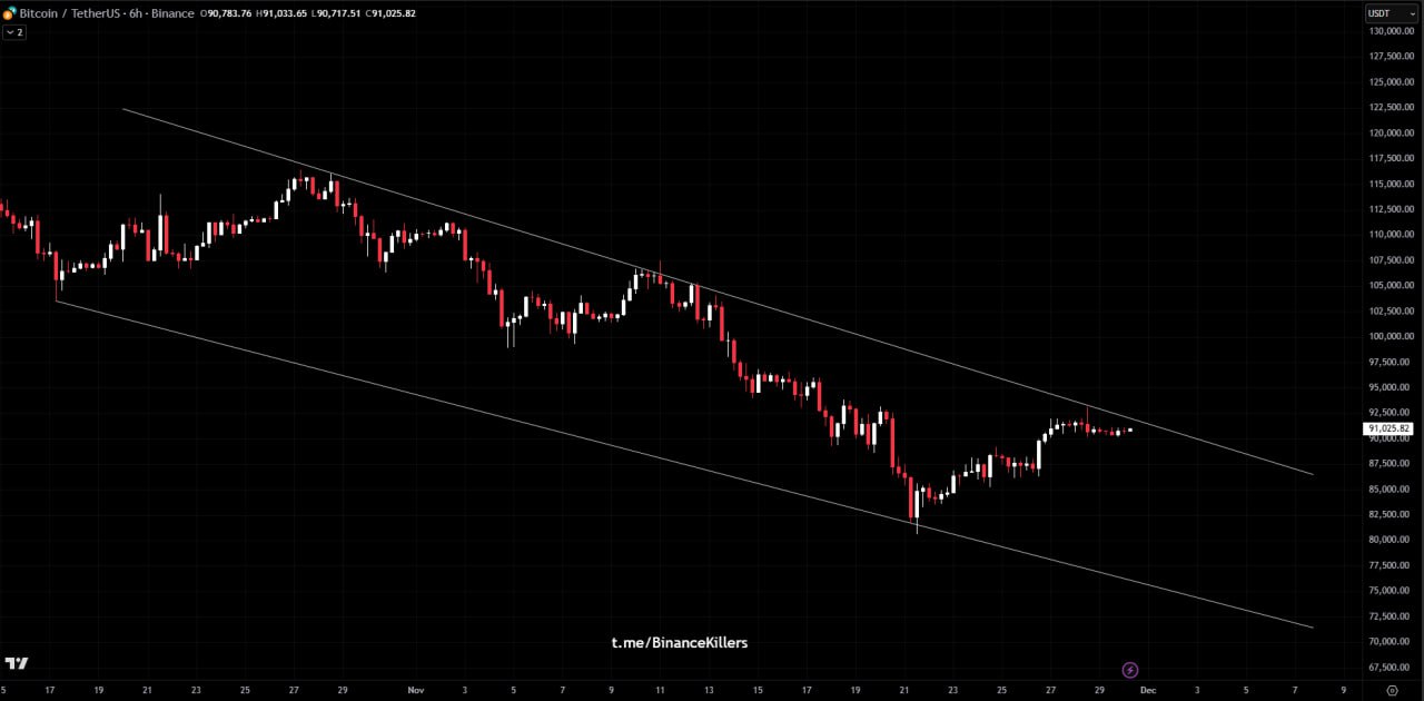If the range fails and BTC loses $90K, the next key support is the $88.5K–$89K demand zone aligned with the ascending trendline. A successful retest here would keep the bullish structure intact.