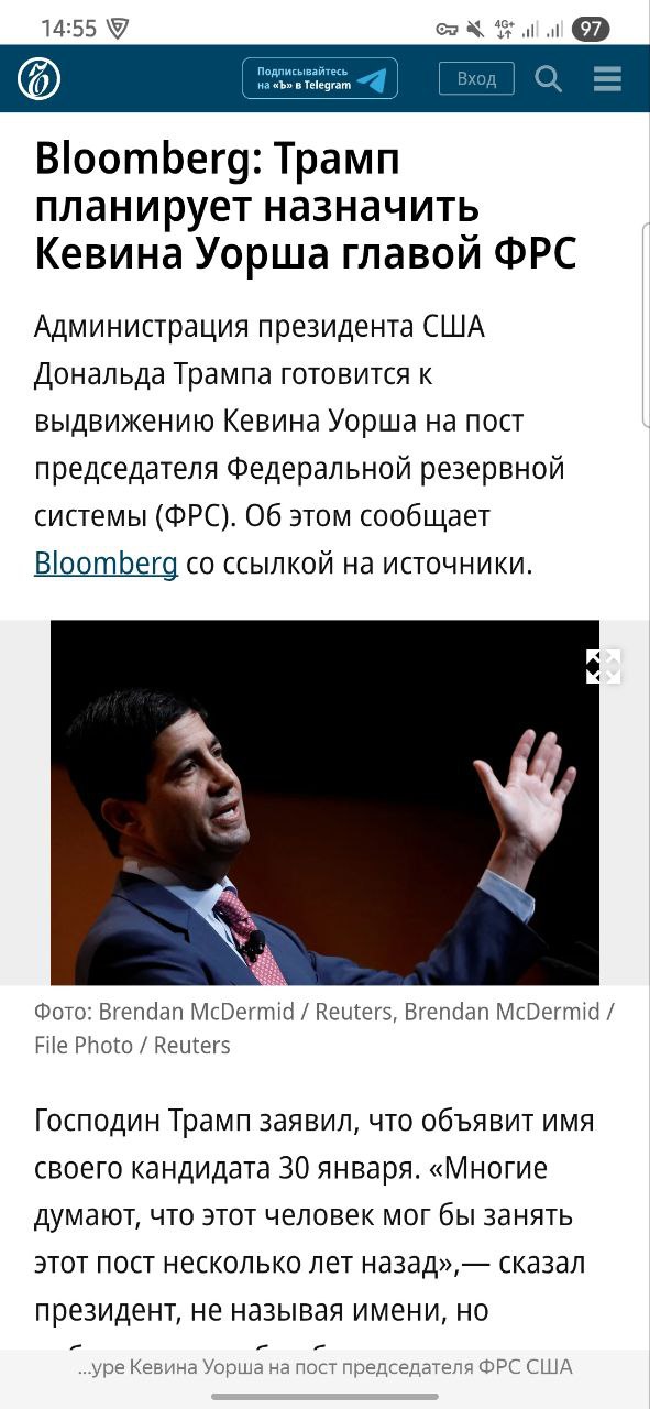 ⚡️💬 Обозрение: Трамп выбрал нового главу Фрс в лице Кевина Уорша.
